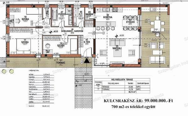 Hagyományos arculat, modern kivitelezés! A Szépingatlan Iroda eladásra kínál Fertőszéplakon, új kialakítású családi házas övezetben 701 m2-es szabályos alakú, összközműves telekre építhető nettó 98,8 m2-es önálló családi házat. Az épület egyszerű, de nagyon mutatós szerkezetben épül. Falszerkezete tégla, a homlokzatra 10 cm-es grafitos hőszigetelő rendszer, 3 rétegű hőszigetelt üvegezésű külső nyílászárók kerülnek beépítésre, Fűtése és a meleg víz szolgáltatás energiatakarékos hőszivattyúról történik, a lakótérben padlófűtéssel. A lakóteret úgy alakították ki, hogy funkcionálisan a nappali életvitele jól elkülönül az éjszakai élettértől. A nappali a nagy üvegfelületnek köszönhetően vizuálisan is kapcsolódik a 26 m2-es fedett teraszhoz, mely egy modern, az ház színével harmonizáló falburkolatot kap, így egyedülálló karaktert ad az épületnek. Az éjszakai része három kényelmes hálószobából és egy fürdőszobából áll, melyben elfér a zuhanyzó és a kád is. Az épületről látványterv készült. Az építkezés megkezdéséhez az engedélyezett tervdokumentáció rendelkezésre áll, érdemi döntés esetén az építkezés azonnal megkezdhető. Kulcsrakész ára: 99 mFt, mely tartalmazza az épület árát a tervezéstől a 100 % -os kész állapotig, 1 autó részére térkövezett beállót és a házhoz vezető járdát, valamint a telek árát. Tervezett átadás a megrendeléstől számított 10 hónap ! Az épület ideális választás azok számára, akik kedvelik a hagyományos arculatú, de legújabb, modern megoldásokat. Érd.: +3630 520 6055, szepingatlan.eva@gmail.com