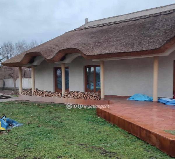Kecskemét Hetényegyháza frekventált részén Budapesthez 80 km távolságra autóval az M5 autópályától 5 percre, 1160 nm-es telken eladó egy igényesen megépített 2 rendbeli 350nm-es, nádtetős családiház. A vályogfalazatú épület tetőszerkezete 2023-ban teljesen új fedést kapott. Helyiségei: nappali-étkezővel, 3 szoba, konyha, fürdőszoba-szauna, zuhanyzó, mosdó wc , tároló, télikert A duplagarázs távirányítóval nyitható. Az otthon melegét gáz-cirkó kazán és a tetszetős cserépkályha biztosítja. A nappali mennyezete szemet gyönyörködtető kupolája, borovifenyőből készült. A vastag vályogfalak és nád kiváló szigetelésének köszönhetően télen jó meleg, nyáron kellemesen hűvös van. A parkosított kertben kialakításra került egy nagy méretű úszómedence is, melynek befejezése az új tulajdonosra vár. Megegyezés szerint berendezéssel vagy anélkül ajánlom két generáció együttélésére, és mind azok, számára, akik kedvelik a tájjellegű de a 21.század minden kényelmét, magas minőségben biztosító otthont. Az OTP Pénzügyi Pont segítségével rugalmas díjmentes hitel ügyintézéssel segítjük ügyfeleinket. Hívjon bizalommal! 89000000 Ft