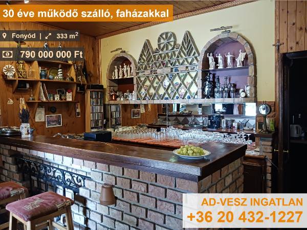 BIZTOS BEVÉTEL, BIZTOS BEFEKTETÉS Fonyódon. Balaton mellett eladóvá vált egy villában kialakított szálló + 8 db faházzal, 2884nm-es telken. 30 éve gazdaságosan működő, kialakult vendégkörrel rendelkező biztos befektetést kínálunk. Fonyód hegyoldalában fekszik a 333nm-es szép villa, csodás panorámával Badacsonyra. A földszinten egy üzemi konyha található, bár, és étterem. Az étteremből a teraszra kiülve látjuk a Balatont. Az első emeleten a télikert, vendégszobák, toalettek helyezkednek el. A tetőtér lakásként működik jelenleg. 8 db 30nm-es vendégház két szobával, tusolóval, wc-vel üzemel, plusz egy 64nm-es különállló, körbejárható épület pinceszinttel és földszinttel. Felújítások: héjazat, 2000-ben fa és termoplan nyílászárók, 2010-ben télikert, 2019-ben napkollektor 2021-ben Fűtés földszint: vízteres kandalló radiátorokkal első emelet: vízteres kandalló radiátorokkal, hűtő-fűtő klímával tetőtér: gázközponti fűtés Parkban grillező hely Parkolás -udvarban -egy férőhelyes garázs a hegyoldalban Lokáció: vízparttól 200 m Hitel, ügyvéd, földhivatal, birtokba adásig ügyintézünk. Sinkóné Varga Klára 06204321227