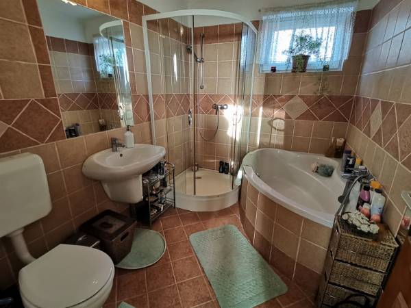 Pécs- Budai városrész eladóvá vált egy több generáció együttélésére alkalmas 300 nm-es családi ház. Jelenleg 4 lakás kialakításával lakják a házat, két földszinti lakás, egy belső két szintes, illetve egy tetőtéri lakás található az épületben. Mindegyik lakás külön-külön bejáratú, saját gépesített konyhával és külön fürdőszobával rendelkezik melyekbe új szaniterek és modern burkolatok kerültek beépítésre. A lakások szobái magas kopásállóságú és jó állapotban lévő laminált parkettával, a többi helyiség, minőségi kerámia lapokkal burkolt. Az ingatlan tégla építésű, nagyméretű tömör téglából és B 30-as blokktéglából több részletben épült és került bővítésre, legutóbb 1985-ben. A ház adottságai teret adnak akár egy rendelő / üzlet / iroda kialakítására, amely teljesen külön válna a lakóegységektől, vagy akár albérletként is bérbe adható. A ház alatt húzódó pince amely a tervrajzon is szerepel borospinceként is használható. A házhoz tartozik 2 garázs, emellett az udvarban több autó is kényelmesen elfér. Nagyobb családi / baráti összejövetelek rendezésére alkalmas a kerti sütögetésre kialakított félig fedett terület ahonnan továbbhaladva kiérünk az ingatlanhoz tartozó 1687 nm-es terület füves, parkosított részére. Igény szerint a kert végénél lévő utcáról bejárat nyitható. Az ingatlan része még egy konditerem, műhely, tároló helyiségek melyek a tervrajzon láthatók. Fűtésről két Westen kombi kazán gondoskodik, emellett mindegyik lakásban önálló fa tüzelésű kazán is van! Épület előtt buszmegálló, közelben üzletek, gyógyszertár, 500 méteren belül orvosi rendelő található Elhelyezkedése és kialakítása miatt nagy családoknak, befektetőknek egyaránt tökéletes választás. Érdeklődjön bátran, ha további kérdése merül fel, vagy meg szeretné tekinteni ezt a páratlan családi házat!
