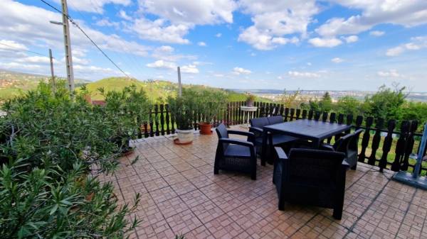Pécsett Ürögi városrészben lévő, körpanorámás, zártkerti csaladi ház gyümölcsössel, szőlővel, nagy telekkel, pincével, zárt víztárolókkal, udvari medencével felújítás közben eladó. Telek méret: 1000nm Épület mérete: 3x30nm Az épület felújítása elkezdődött de nincs befejezve. A tetőtérben egy 30m2-es garzon konyhával, fürdőszobával, az emeleten egy szoba és egy nappali-konyha, a földszinten konyha, tároló és pince található. A terasz a tervek szerint beépíthető nappalinak, a garázs kész van, innen nyílna egy előszobán keresztül a bejárat. Az udvarban medence aminek a végleges helye már le van betonozva. A vezetékes vízhez az előkészítés megvan már csak rá kell csatlakozni az utcai vízhálózatra (hamarosan elér idáig). A vízellátás jelenleg ciszternából történik. A jelenlegi nagy teraszról panorámás kilátás nyílik a Mecsekre és a város felé. Egy udvari parkolós és egy garázs áll rendelkezésre. Jelen pillanatban az egyik lakást bérlő lakja. Hívjon bizalommal!