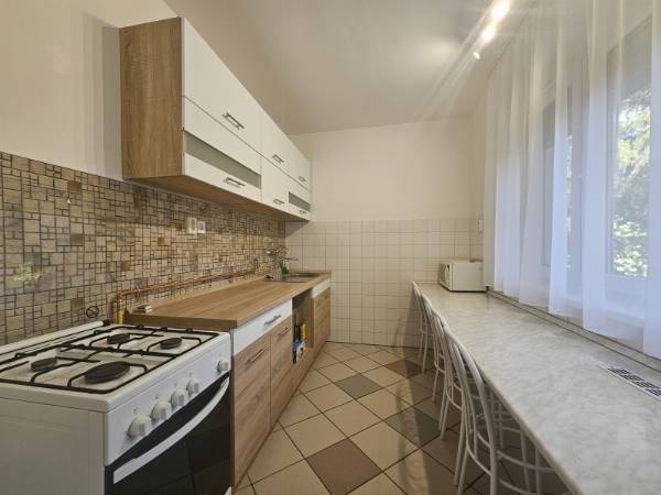Pécs belvárosában, Mecsekoldali részen, 85 m2-es bútorozatlan klimatizált lakás kiadó. A lakás csendes zöldövezetben található,de mégis közel a belvároshoz. Az épület csendes , nyugodt környezetben egy zsákutcában van, nem messze a Székesegyházól. A belváros 10 perc sétával elérhető. A 85 nm-es belső két szintes ingatlanban , az alsó szinten új konyhabútorral berendezett konyha , kamra, egy szoba és egy wc. található. A következő gépek állnak rendelkezésre: Mosógép Mikrohullámú sütő Gáztűzhely Hűtőszekrény Az alsó szinthez egy terasz is tartozik. A szobák laminált parkettával burkoltak,a nyílászárók műanyagra lettek cserélve,redőnnyel szúnyoghálóval vannak felszerelve. Az emeleti részen két külön nyíló szoba , tágas fürdőszoba található,amelyben fürdőkád és zuhanyzó is beépítésre került, illetve itt is van egy wc. A gáz cirkó fűtésnek köszönhetően gazdaságos a fenntartása. A közelben élelmiszerbolt , orvosi rendelő , posta , óvoda , bölcsőde , iskola és az egyetem Műszaki kara is megtalálható. A lakást párnak,családnak ajánlom leginkább. Kisállat tartása és a dohányzás nem megengedett. Egy havi bérleti díj és két havi kaució megfizetését követően január 15-től költözhető.
