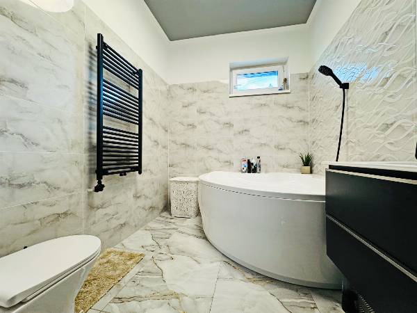 Hajdúsámson belvárosi szakaszán, aszfaltozott, összközműves utcában, új építésű, egyszintes, 3 hálószobás, modern elrendezésű ikerház, saját telekkel, garázzsal eladó. Az ingatlan külön bejárattal, elkerített telekrésszel, kerítéssel rendelkezik. Mivel a lakóegységek a garázsoknál találkoznak, így nincs a szomszédok között közvetlen falkapcsolat sem. - teljes telek területe 1027 m2, - Porotherm 30 vázkerámia, - 15 cm homlokzati szigetelés, - 12 cm padlószigetelés, - 30 cm födém ásványgyapot szigetelés, - 3 rtg. 6-7 kamrás ablakok, redőnytokok, - kondenzációs gázkazán, padló és radiátorfűtés, - 3.5 kw inverteres klíma –„H” tarifa, - garázs 20 m2, elektromos kapuval, - a telekrész mintegy 330 m2. Az ingatlan rövid határidővel birtokba vehető, jelenleg a konyhabútorra, a kert parkosítására és a beltérben még néhány apró esztétikai beavatkozásra van szükség. .