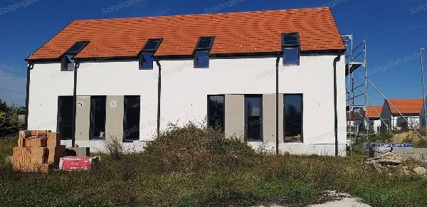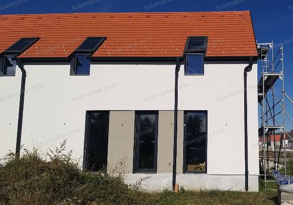 A Szépingatlan Iroda eladásra kínál Nagycenken, a Széchenyi lakópark legdinamikusabban fejlődő területén, kizárólag új építésű családi házas övezetben, 560 m2-es telken épülő, 95 m2-es ikerház, utcafronti lakását, saját 280 m2-es telekrésszel. Az ingatlan saroktelken helyezkedik el, így kihasználva a terület adottságait, a lakóépület szeparáltan, külön bejárattal közelíthető meg. Az egyszerűség, a praktikusság, és a költséghatékonyság volt a fő szempont a házak megalkotásakor. A két ház megegyező elrendezésű, mely három hálószobát, amerikai konyhás nappalit-étkezővel, fürdőszobát, két WC-t, gépészeti helyiséget, egy tágas előszobát és egy tárolóhelyiséget foglal magában. Az alsó szinten a nappali-konyha-étkező kiváló egysége található, mely hatalmas üvegfelülettel kapcsolódik a nyugati tájolásu terasszal a kert felé. Kényelmes lépcső vezet az emeleti szintre, a pihenés és a magán szféra felső szintjére, ahol három szoba és a fürdőszoba kapott helyet. Minden helyiség közlekedőből nyílik. Az ingatlan két szintes, sávalapra épült ház, 30-as POROTHERM téglából, 18 cm homlokzati szigeteléssel valósul meg, hőszivattyús fűtésrendszerrel, a lakótérben padlófűtéssel. A hőszivattyús fűtésnek, a megfelelő szigetelésnek, a korszerű nyílászáróknak köszönhetően alacsony rezsivel lehet kalkulálni. A külső nyílászárók fehér, bukó-nyíló szerkezetűek, 3 rétegű hőszigetelt üvegezéssel és külső árnyékolóval kerülnek beépítésre. A belső falak festése fehér színben, hideg-meleg burkolatok, beltéri ajtók, szaniterek az építtetővel egyeztetve, meghatározott áron választhatók. Az előkertben két autó számára biztosított a parkolási lehetőség. Babaváró hitel, CSOK Plusz, támogatott hitelek igénybe vehetők! Bankfüggetlen szakértő kollégánk teljes körű és díjmentes hitelügyintézéssel áll az ügyfelek rendelkezésére. Kérje személyre szabott ajánlatunkat! A projekttel kapcsolatos további kérdésekkel keresse minket személyes találkozóra! Tervezett átadás a megrendeléstől számított 10 hónap. Az épületről látványterv készült, a fotók a jelenleg építés alatt álló házról készültek. Ára: 84,8 mFt. Érd.: +3630 520 6055, szepingatlan.eva@gmail.com