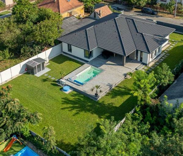 Eladó Prémium minőségű álomotthon Dunavarsány központjától pár percre! Ez a modern, energiatakarékos, 171 m²-es alapterületű családi ház kiváló lehetőség azok számára, akik kényelmes, magas színvonalú otthont keresnek. Az ingatlan 4 szobával, 2 gardróbbal, 1 fürdőszobával, 1 wc-vel, és 1 fürdő wc-vel, amerikai konyhás nappalival, kamrával , 2 autó számára garázzsal rendelkezik. A ház fűtése padlófűtés, -16 kW-os hőszivattyúval és klímával van felszerelve, így a tökéletes komfort érzet mindig biztosított. A ház energiahatékonyságát a 15cm homlokzati és 30cm födémszigetelés és 400 literes használati melegvíz tartály a H tarifás rendszer fokozza. Az 100 m²-es terasz melyben a medence is található a földfelszíntől 30cm rel ki lett emelve ,amelyből 20 m² fedett! Automata öntözőrendszerrel és robotfűnyíróval felszerelt kert kellemes pihenést biztosít. A biztonság érdekében a ház riasztórendszerrel, mozgás- és nyitásérzékelőkkel van ellátva. A két beállós fűtött garázs távírányítós duplagarázskapuval van felszerelt! A prémium kategóriás nyílászárók kívülről antracit, belülről fehér színűek, wifis vezérlésű antracit redőnyökkel rendelkezik az épület. Az ingatlan 2 méteres színezett betonkerítéssel rendelkezik, amely az egész kertben privát szférát biztosítja. Továbbá egy 4 m²-es antracit lemeztároló is a ház részét képezi. A belső és külső tereket színes LED világítással és egyedi dekorfalak teszik különlegessé a a luxus ingatlant. További információkért és megtekintésért keressen bizalommal! Érd: Ernszt Zsuzsanna, tel: +36/706154751, e-mail: ernszt.zsuzsanna@dh.hu Referencia szám: HZ036667-IM