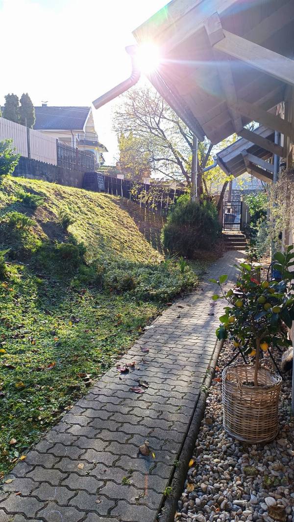 Kivételes lehetőség! Tágas szép lakás ELADÓ Esztergomban, a kedvelt és népszerű Aranyhegyen, a Siszler úton. Azonnal költözhető! Megvételre kínálok Esztergomban, a Kórház feletti népszerű városrészen, a Siszler úton egy nagy udvaros, 4 lakásos tégla építésű társasházban egy hangulatos és hívogató lakást. Ötvözi a családi ház és a társasházi lakás minden előnyét. Mindössze 4 lakás található a tágas természetközeli kialakítású nagy, közös használatú udvaron. A telken minden ingatlanhoz 2 kocsibeálló tartozik, térkövezett területen. Elektromos kapun jutunk be az udvarra, amely teljesen zárt és körbekerített, privát használatú a társasház lakói számára. A lakás 3 szintes összesen 127 nm alapterületű. Alul az elektromos ajtós garázs és tároló kapott helyet, ami az udvar felől közelíthető meg. A járdán keresztül, a társasház másik oldaláról közelíthető meg a lakószint, amely belső kétszintes, dupla erkélyes, dupla klímás, teljesen bútorozott és berendezett, amit a vételár teljes egészében tartalmaz. Az első lakószinten előszoba, vendég WC, kis gardrób, az étkező, konyha és a tágas nappali egy légtérben kapott helyet, hatalmas ablakokkal és erkély ajtóval, gyönyörű panorámával a Bazilikára. A felső szintre a nappaliból kényelmes, épített kialakítású lépcsőn jutunk fel, ahol 3 különböző méretű szoba kapott helyet és egy kádas fürdőszoba, WC-vel együtt. Itt a legnagyobb szobában helyezték el a split klímát. Innen egy francia erkélyről csodálhatjuk Esztergom páratlan látképét. Az alsó erkély kb 12 nm-es, ezért nagyszerű lehetőség kinti pihenő vagy kávézóterasz kialakítására. A lakásban a vizes helyiségek hidegburkolattal, a szobák és a nappali pedig laminált padlóval burkoltak. A melegről elektromos falikazán gondoskodik radiátor hőleadókkal, valamint a bojler állítja elő a használati melegvizet. Minden közmű egyedi mérős. Lehetőség van gázfűtésre áttérni (korábban ezzel fűtötték a lakást). Az egész lakás világos, tágas, kis fűtési költségen fenntartható, mivel a szomszédos lakásokkal is körbefűtött. A magas minőségű, hőtartó egyedi faablakok és az épület szigetelése alacsony rezsiköltséget eredményez. Az ingatlanban habár társasházban található, a tulajdonosok egyezsége szerint közös költséget nem kell fizetni. A hozzá tartozó szép és természetközeli udvart megegyezéses alapon, egymást váltva egy hónapban egyszer tartják rendben, míg évente kétszer kertész érkezik a nagyobb munkálatokra. Az ingatlan 2003-ban épült, magas minőségű építőanyagokkal, külső szigeteléssel, minőségi fa külső nyílászárókkal, gondolva arra is, hogy minden lakáshoz további 2 udvari kiépített parkolóhelyet biztosítsanak a vendégek vagy több saját jármű számára. A lakásban a meleg mediterrán hangulat uralkodik, erről az Olaszországból érkezett hidegburkolatok gondoskodnak. Ajánlom családot tervezőknek, több gyermekeseknek, vagy befektetőknek bérbeadás céljából. Olyanoknak, akik természetközeli kialakítású udvarra vágynak, a lakás és a családi ház közötti megoldást keresik mindennapjaikhoz, alacsony rezsivel és jó városi lokációval. Az ingatlan per és tehermentes, nem lakott, előre egyeztetve bármely napszakban megtekinthető. Támogatott hitelekkel és piaci konstrukcióval is megvásárolható. Ebben is segítséget tudunk nyújtani, továbbá a teljes adásvétel ügyintézésében akár jogi képviselettel is.