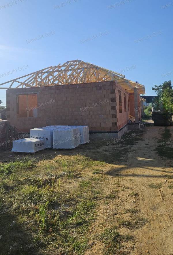 Győr-Moson-Sopron Vármegye, Győrújfalu új építésű 4 szobás ikerház eladó. GYŐRÚJFALU Magyarország északnyugati részén, Győrtől 6 kilométerre helyezkedik el, az 1401-es út mentén. Lakossága kb. 2000 fő. Az ikerház elhelyezkedését tekintve központi helyen van, de a főúttól kicsit távolabb. Egy 1323 m2-es telken helyezkednek el, közös fala nincs, tárolókon keresztül csatlakoznak egymáshoz. Utcafronti (L1) ház: 94 m2 + 17 m2 tároló 517 m2-es telek, hátsó (L2) ház: 103 m2+8 m2 tároló + 18 m2 terasz 806 m2 telken. Tárolók csak a kulcsrakész befejezéshez kérhetők. AZ ÉPÜLET Az 5 szobás (L2), nettó: 103 m2-es ikerház fűtéskész állapotban kerül átadásra várhatóan: 2025 második felében. Természetesen, kulcsrakész befejezésre is van lehetőség. Két ikerház elhelyezkedése: egymás mögött helyezkednek el, tárolókon keresztül csatlakoznak. Elosztása: Előtér, közlekedő, amerikai konyhás nappali étkezővel, kamra, négy szoba, két fürdőszoba, külön WC, háztartási helyiség. MŰSZAKI TARTALOM: Teherhordó falazat 30-as tégla falazattal készülnek, 15 cm-es hőszigetelő rendszerrel. Fafödém, 30-cm üveggyapot hőszigeteléssel. Terrán fekete tetőcserép, antracit bádogos szerkezet és esőcsatorna. Padló hőszigetelés 12 cm-es lépésálló. Homlokzati fehér műanyag nyílászárók hő- és hangszigetelt 5 légkamrás, 3 rtg üvegezéssel, műanyag 5 ponton záródó hőszigetelt fehér bejárati ajtó. A fűtésről és melegvízellátásról kondenzációs kombi gázkazán gondoskodik (Saunier Duval), hőleadás padlófűtésen keresztül történik. Az ár a telekhányadot már tartalmazza. Kisebb mértékű változtatás az építés előrehaladottságától függően lehetséges, műszaki tartalom emelhető felár ellenében. (akár hőszivattyús fűtési rendszer, napelem is kérhető) A családi házra CSOK Plusz, kedvezményes lakáshitel, illetékmentesség is igényelhető/felvehető, így az összes támogatás kihasználható rá, ami aktuálisan elérhető. KI ÉPÍTI? A vállalkozó és összeszokott csapata, számos referenciával rendelkeznek, lassan 20 éve építenek, befejeznek, felújítanak. Ez alatt az idő alatt kialakult egy rutin, a házak terveit folyamatosan alakítják, mindig a kor legfontosabb követelményeinek és trendjeinek figyelembe vételével. Tudják, amit vállalnak azt precízen, pontosan megvalósítják, határidők, igények betartásával. Ne maradjon le róla! A jelen hirdetésben rögzített, az ingatlannal kapcsolatos adatok, információk a Megbízó tájékoztatása alapján kerültek meghatározásra. Irodánkban az alábbiakkal tudjuk segíteni a gyors és megbízható ügyintézést: -bankfüggetlen hitelügyintézés, CSOK Plusz -energetikai tanúsítvány -értékbecslés -ügyvédi szerződések, jogi tanácsadás