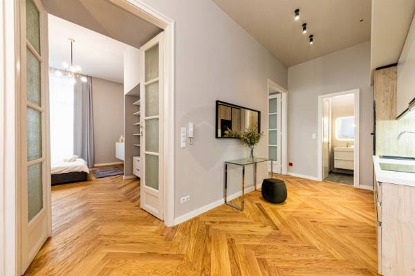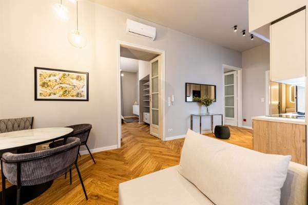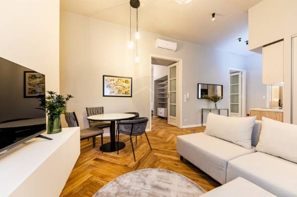 Üzleti vállalkozások és igényes magánvásárlók számára egy valóban páratlan lehetőséget kínálunk: egy exkluzív, prémium kivitelezésű lakás megvásárlását Budapest szívében, a Belváros egyik legkeresettebb környékén, a Hercegprímás utcában. Ez a 80 négyzetméteres, modern otthon nemcsak eleganciájával és minőségi kialakításával tűnik ki, hanem kivételes elhelyezkedésével és számos előnyével is. Az ingatlan tágas, világos terekkel rendelkezik, melyek között két nagy szoba és két luxus minőségű fürdőszoba található, így tökéletes választás lehet mind családok, mind pedig bérbeadási célú befektetők számára. Az egyedi tervezés és a prémium kivitelezés garantálja, hogy az otthon minden részlete a legmagasabb szintű kényelmet és esztétikai élményt nyújtja. A tágas, amerikai konyhával egybenyitott nappali ideális helyszíne a baráti összejöveteleknek, míg a lakás gondosan beépített bútorai és modern gépesítése azonnali beköltözést tesz lehetővé. A fűtésről gáz cirkó rendszer gondoskodik egyedi méréssel, míg a légkondicionáló berendezés a nyári hónapokban is kellemes hőmérsékletet biztosít, így minden évszakban maximális komfortot élvezhet. A Hercegprímás utca környéke különleges vonzerőt biztosít: a kiváló közlekedési lehetőségek révén a város bármely pontja gyorsan és könnyedén elérhető, legyen szó tömegközlekedésről vagy autós közlekedésről. Ezen túlmenően a környék páratlan ellátottsága – éttermek, kávézók, boltok és különféle szolgáltatások közvetlen közelében – biztosítja, hogy minden szükséges kényelem kéznél legyen. A lakás elhelyezkedése és kialakítása révén a városi élet minden előnyét kínálja, miközben csendes és biztonságos környezetet nyújt lakói számára. Ez az ingatlan nemcsak egy különleges otthont jelent, hanem kiváló befektetési lehetőséget is, amely hosszú távon is értéket képvisel. Amennyiben szeretné megtudni, hogyan válhat az Öné ez a kivételes ingatlan, kérem, keressen bizalommal! Örömmel osztom meg Önnel a részleteket, és segítek abban, hogy megtalálja álmai otthonát vagy befektetését.