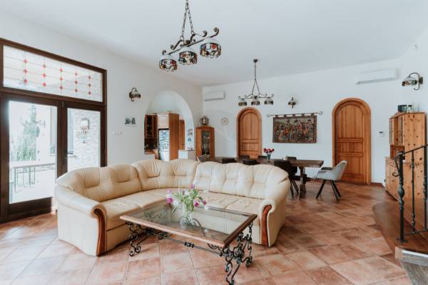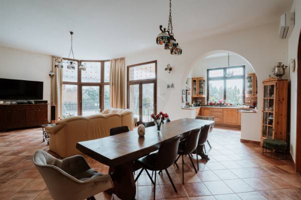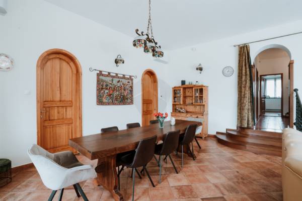 Az Ön szívéhez-lelkéhez is közel áll a mediterrán életérzés? Akkor ezt a toszkán stílusú villát mindenképp látnia kell! Garantáltan beleszeret! Gödöllő egyik legkedveltebb részén a Fácán soron CSENDES KERTVÁROSI KÖRNYEZETBEN kínálunk eladásra egy 1270 nm-es telken elhelyezkedő 393 nm-es IMPOZÁNS mediterrán családi házat. KIFOGÁSTALAN műszaki és esztétikai állapotban lévő, MAI IGÉNYEKNEK maximálisan megfelelő, minden igényt kielégítő családi ház. Minőségi anyagokból felépült házban mindent a kifinomultság és elegancia hirdet: a tágas terek, mediterrán burkolatok, kovácsoltvas korlátok, hatalmas üvegablakok ólomüveg berakással, cserépkályha, fa nyílászárók, fa boltíves beltéri ajtók, spaletták, sok egyedi belsőépítészeti megoldás. Elmúlt napokban FRISSEN FESTETTÉK a belső tereket és a külső homlokzatot, így Önnek már csak beköltözni kell! Ez a GYÖNYÖRŰ NAPFÉNYES, TÁGAS otthon 2008-ban épült, Jáger Ilona (MATE főépítésze) által tervezve. Minden részletre kiterjedő, igényes tervezésnek köszönhetően, a funkcionalitás és exkluzivitás találkozik ebben az ingatlanban. A belső terek kitűnő kialakításának köszönhetően egy nagyobb család tagjai külön-külön is élvezhetik az elvonulást, ugyanakkor a tágas 60 nm-es nappali-konyha-étkező és a hobby helyiségek helyszíne összeköti mind a család mind a baráti társaságot. Az ingatlanban mindenhol radiátorok padlófűtéssel kombinálva kerültek kialakításra, kiegészítve helyiségenként hűtő-fűtő klímával. NAPELEM rendszer kialakítására és a Bosch kazán cserére 2024-ben került sor. A házba belépve a 200 nm-es FÖLDSZINTEN az alábbi helyiségeket találjuk: közel 60 nm-es egyedi tervezésű konyha-étkező-nappali nagy belmagassággal, hatalmas ólomüveg felületekkel. Nappaliban csodálatos, ide tervezett CSERÉPKÁLYHA áll. Konyha mellett kamra, háztartási helység mely mosókonyhaként használható. Földszinten kapott helyet még egy vendégszoba fürdővel, dolgozószoba, hálószoba tágas előtérrel, gardróbszoba, fürdőszoba nagy masszázskáddal, 2 WC kézmosóval. A hatalmas ÓLOMÜVEG ABLAKOS nappaliból kilépve jutunk a 40 nm-es teraszra, mely a minőségéről és egyediségéről híres Otti Manufaktúra kövével burkoltak. Mindenütt fa nyílászáró található, szúnyoghálóval és elektromos redőnnyel felszerelve, kívül fa spalettákkal díszítve. 84 nm-es EMELETEN hatalmas közlekedő, két szoba, gardróbszoba, fürdőszoba kapott helyet. 89 nm-es pince 4 helyiségből áll: konditeremnek, wellnessnek alkalmas helyiség, WC, borkönyvtár, borospince. Gyönyörű a hatalmas téglával burkolt hangulatos BOLTÍVES PINCE borkönyvtárral, innen könnyen kijutunk a kertbe és a teraszra. Baráti összejövetelekhez, borvacsorákhoz ideális helyszín. A gondozott kert AUTOMATA ÖNTÖZŐRENDSZERREL, 62 méter mély bevizsgált ivóvíz minőségű fúrt kúttal, esővíz gyűjtő tartállyal ellátott. Az előkert és a kert is folyamatosan gondozott, egész évben látványos növényekkel, gyümölcsfákkal ültetett. Kert hátsó részében egy nagy kutyakennel került elhelyezésre, melyben több kutya is tartható. Kovácsoltvas kerítés kapuval felszerelt, melyen keresztül bejutva az udvarba 3-4 autó számára biztosítva a felszíni parkolás. Egész házra jellemző a magas minőség, kényelem, elegancia, egyediség, melegség, minden ami egy otthontól várható. Ide nagyon jó érzés haza érkezni! Jó energiákkal megáldott! Gyere el és érezd te is! Ez az ingatlan valódi ritkaság a piacon! Irodánk az értékesítés első lépésétől az utolsóig az Ön rendelkezésére áll. Amennyiben valamelyik ingatlanunkat jelenlegi ingatlana értékesítése után kívánja megvásárolni, vagy ha egy megbízható irodával szeretne együttműködni, amely teljes körű ügyintézést biztosít megfizethető áron, forduljon hozzánk bizalommal!