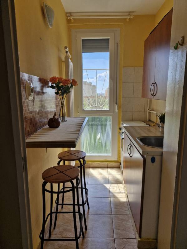 A pécsi egyetemisták által legkedveltebb egyetemi városrészben, a Budai Nagy Antal utcában kiadó egy 35 m²-es, negyedik emeleti, világos és csendes panellakás. A lakás elhelyezkedése kivételes: közvetlenül az utca túloldalán található a Pécsi Tudományegyetem Bölcsészettudományi Kara valamint a 400 ágyas klinika is. Így tökéletes választás egyetemisták számára, akik szeretnének gyalog pár perc alatt beérni az órákra vagy egészségügyben dolgozóknak, akiknek így kényelmesebb a munkába járás. A lakás leírása: Az előszobában beépített szekrény és egy nagy hűtőszekrény kapott helyet. A konyhában étkezőpult két székkel biztosítja a kényelmes étkezést. A lakás két külön nyíló szobával rendelkezik. A nagyobbik szobában egy polcos, rengeteg tárolóhellyel rendelkező szekrénysor, kihúzható kanapé és légkondicionáló található. A kisebb szoba jelenleg szekrényekkel berendezett, de igény esetén ágyat is biztosítunk. A fürdőszoba jelen pillanatban felújítják. Az egyedi mérésű távfűtés gondoskodik a kellemes hőmérsékletről és a költséghatékonyságról. A lakáshoz tartozik egy közös tároló, ideális ritkábban használt holmik számára. Parkolás az utcán, fizetős övezetben lehetséges. 3 perc sétára Lidl, valamint több étterem, cukrászda és más kényelmi szolgáltatás is megtalálható a közelben. Költőzhető AUGUSZTUS 1-től.