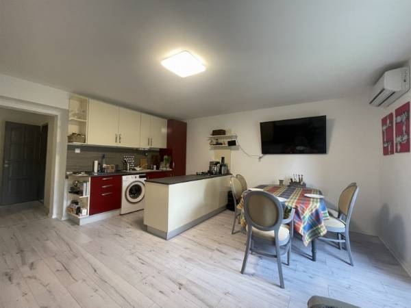 Eladó Kővágótöttös, Tortyogó-telep részén 4 lakásos földszintes társasházban egy külterületi 54 m2+10 m2 előteres téglalakás, kb 500 m2-es saját kerttel. Állapotra felújított. Az ingatlan kiváló elrendezésű, minden helyiség külön-külön közelíthető meg. Található bent egy fedett előtér, közlekedő, fürdő-wc, amerikai konyha-nappali étkező, terasz és 1 db hálószoba. Téli hidegben a fűtést 2 db inverteres hűtő-fűtő klíma biztosítja. Közvetlen környezetében megtalálható a természet, távolsági buszmegállók, étterem és egyebek is. Tehermentes, rövid időn belül költözhető! Az ingatlanra hitel NEM VEHETŐ FEL, tulajdoni lapon jogilag külterület társasházi lakás. Hívjon tekintse meg és tegyen egy ajánlatot!
