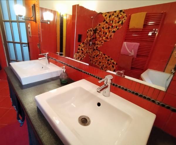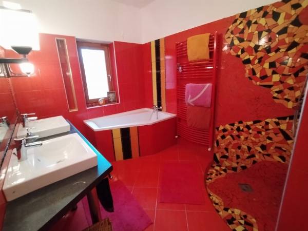 Pécs Mecsekoldalban a csendes és nyugodt Donátus városrészben, eladóvá vált egy 250 m²-es, egyedi stílusban megálmodott, különleges atmoszférájú családi ház. Az ingatlan egy 1381 m²-es, intim fekvésű telek felső részén helyezkedik el, távol az utcától és a szomszédoktól – tökéletes privát szférát biztosítva lakói számára. A ház egy aszfaltozott, széles zsákutcában található, ahol garantált a nyugalom és a minimális forgalom. Az eredetileg 1985-ben épült ingatlant 2011-ben 150 m²-rel bővítették a jelenlegi tulajdonosok, saját elképzeléseik szerint, így nyerte el mai, tágas és különleges formáját. A ház szíve az amerikai konyhás nappali, ahonnan lenyűgöző kilátás nyílik a TV-toronyra, a Kelet-Mecsek dombjaira és a gondozott kertre. A tér különlegességét fokozza a nagy belmagasság, a galéria, az ipari klímaberendezés, valamint a Zsolnay zárt kandalló, amely nemcsak esztétikai élményt nyújt és hidegebb napokon meleget, de a gáz-cirkó fűtéssel összekapcsolva pedig praktikus és gazdaságos megoldást kínál a fűtési költségek csökkentésére. A hatalmas, szúnyoghálós francia ablakokon keresztül egész nap természetes fény áramlik a belső terekbe. Az ingatlan négy hálószobával, két gardróbhelyiséggel és két, kézzel készült, egyedi mintázatú csempével burkolt fürdőszobával, valamint egy külön mosdóval is rendelkezik. A pihenést és feltöltődést szauna teszi teljessé. A két külön bejáratú garázsban kényelmes parkolásra van lehetőség, ráadásul egy 60 m2-es tárolóhelyiség is kapcsolódik hozzá. A gondosan ápolt kertet futórózsák és egy nagy, árnyat adó diófa díszítik, mely alatt a nyári melegben kellemes hűsölésre nyílik lehetőség. A kikapcsolódást egy 5 méter átmérőjű, könnyűszerkezetes medence is szolgálja. A buszmegálló mindössze 100 méterre található, a belváros pedig kényelmes, 15 perces sétával elérhető. Ez az ingatlan ideális választás lehet nagycsaládosok, természetkedvelők, valamint háziállattal élők számára is, akik egy igazán különleges otthont keresnek kiváló elhelyezkedéssel. Amennyiben az ingatlan felkeltette érdeklődését, kérem, keressen bizalommal! Ügyvédi háttérrel, valamint hitelügyintézésben is készséggel állunk rendelkezésére.