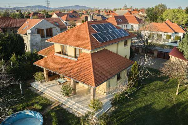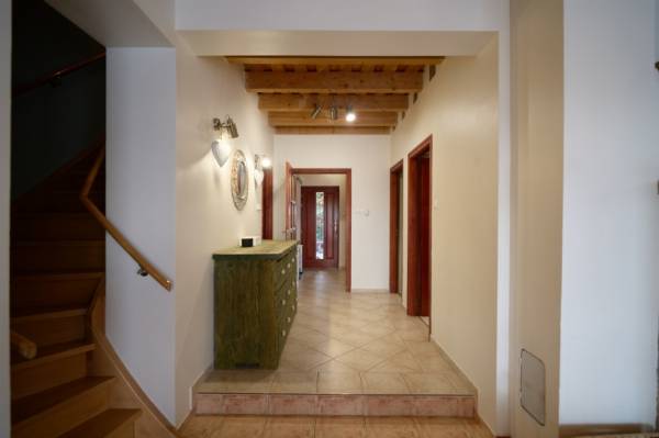 Nagykozár csendes zsákutcájában eladó egy 1319 m2- es telken elhelyezkedő kétszintes, 5 szobás, újszerű állapotú és rendkívül igényes családi ház! A gondosan karbantartott lakóövezeti telek mellé tartozik még egy 1124 m2- es gyümölcsös is melyen egy újépítésű gazdasági épület van. 39 méter mély, ivóvíz tisztaságot biztosító fúrt kút a kertben, mellyel öntözni, vagy medencét tölteni is lehet. A 38-as Porotherm falazatú és 10 cm homlokzati szigeteléssel ellátott ház 4 hálószobából, egy nagy amerikai konyhás nappaliból, két fürdőszobából, egy külön mosdóból és tároló helyiségből áll, melyet egy nagy 35 m2- es terasz egészít ki, így nagyobbá téve az életteret. Fűtését jelenleg egy téglából épült kályha biztosítja, mindezek mellett a központi fűtés az egész házban be van csövezve, így előkészítve akár a gáz központi fűtést is. A ház 5 Kw-os napelemmel felszerelt, 3 fázis van! Parkolás garázsban és udvari beállón, így 4 autó kényelmesen elfér. Amennyiben felkeltette érdeklődését, keressen bizalommal!