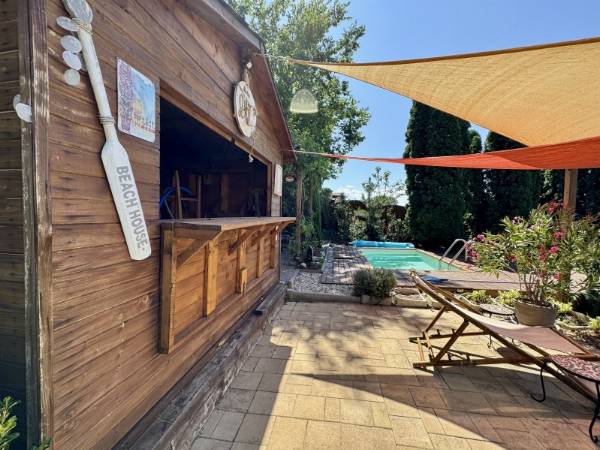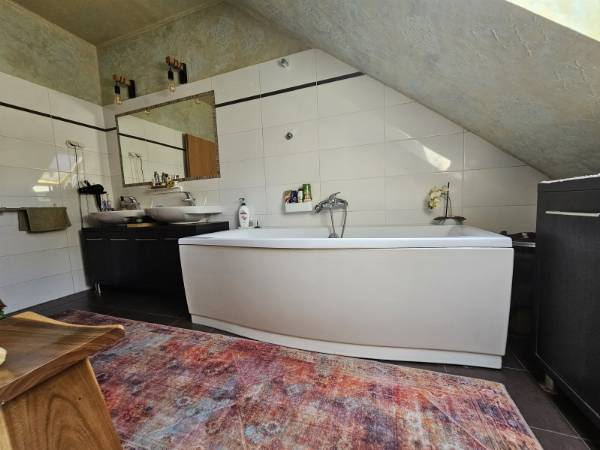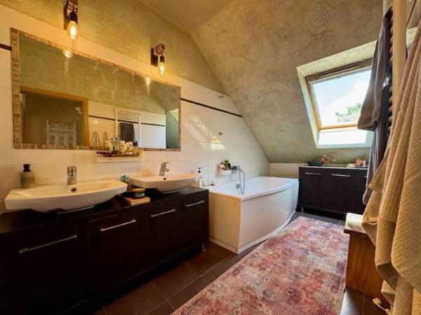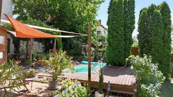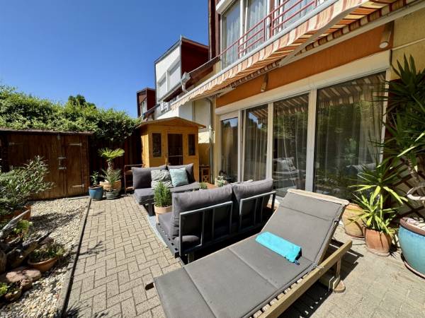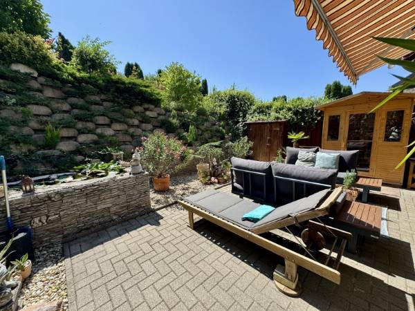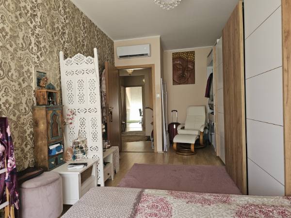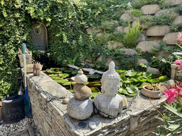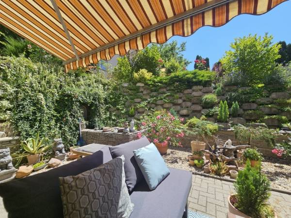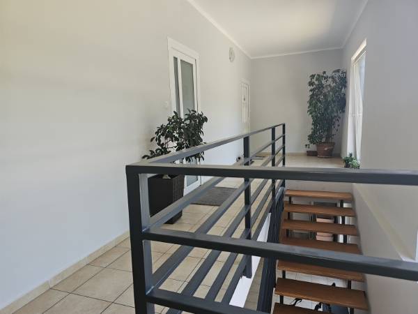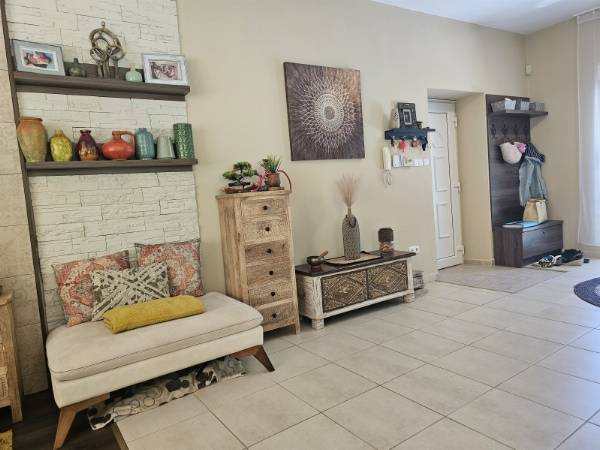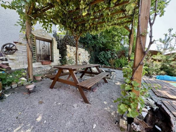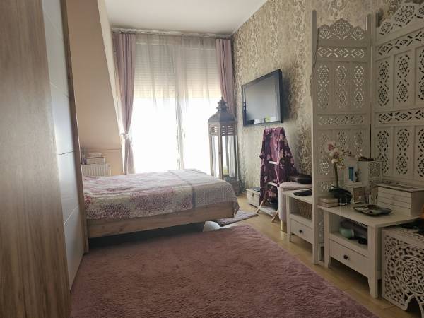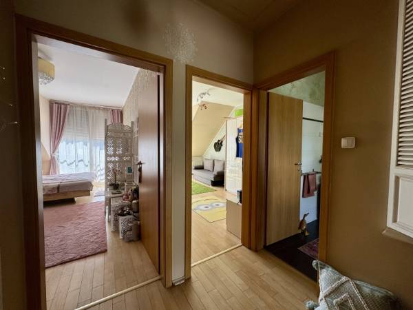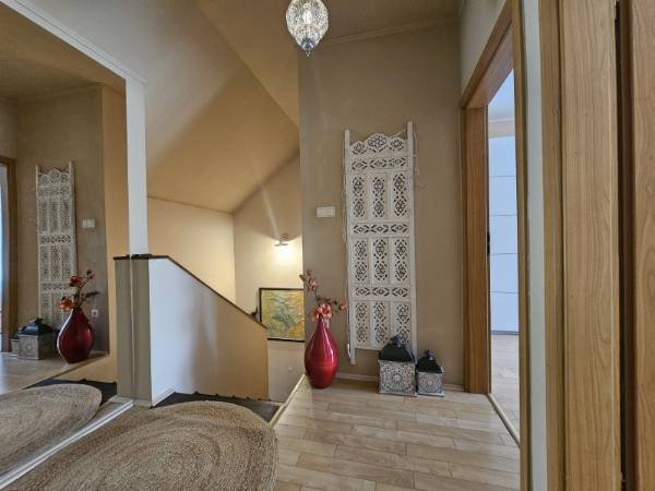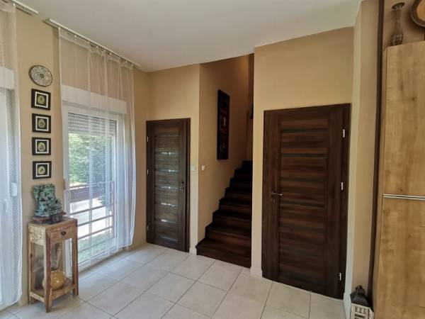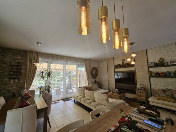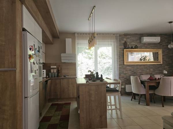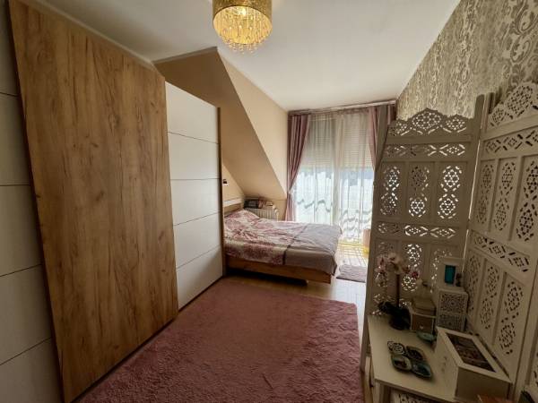 Pécs Mecsekoldal-Rigóderi részén különleges adottságokkal rendelkező kertkapcsolatos lakás eladó ! A három lakásos társasház 2008-ban épült. A belső két szintes ingatlanhoz tartozik egy csodálatosan kialakított kert, ebből kettő teraszként és egy kerti rész,ahol pezsgőmotoros polipropilén medence, pari házikó,szőlővel befuttatott pergola, sütögető és étkező rész lett kialakítva. A kertben szebbnél szebb növényekkel van beültetve,igazi mediterrán hangulatot teremtve. A kerti részről csodás Mecseki panorámában gyönyörködhet az új tulajdonos. Az alsó szint a teremgarázs szintje,ahol még egy saját tároló is tartozik az ingatlanhoz.Itt kapott helyet a gáz cirko kazán amihez egy vízlágyító is hozzá lett kötve. A lakásba érve egy tágas egy légtérben lévő előszoba-nappali-konyha étkező lett kialakítva. Három oldalról ablakokkal, ennek köszönhetően gyönyörű napfényes és tágas . A különleges nyugalmat árasztó déli terasz kerti csobogóval, virágokkal. Az alsó szinten még egy wc-mosdó is ki lett alakítva. Az emeleti szinten kádas fürdőszoba dupla mosdó,wc-bidé, itt kapott helyet a mosógép is.Két nagy méretű szoba is az emeleti szinten található. Minden szoba klimatizált. A hálószobák radiátorral fűtöttek,a többi helyiségben padlófűtés található. A nyílászárók elektromos redőnnyel szereltek. Az elektromos nyitóval ellátott gépkocsibeálló ára +5.9 millió forint. Egy igazi gyöngyszem az eladó ingatlanok kínálatában. Jöjjön tekintse meg és tegyen egy ajánlatot !