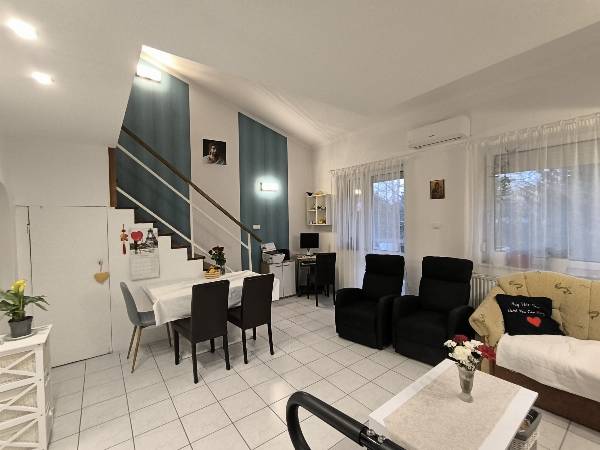 Árcsökkenés!!! Mosonmagyaróváron a Mosoni Dunától és a Városközponttól kb. 5 perc sétányira lévő 2007-ben épült, tégla falazatú, cseréptetös, remek adottságokkal rendelkező 4 lakásos társasházban egy nettó 61 nm-es, bruttó 71 nm-es belső két szintes, 1. emeleti erkélyes lakást kínálok megvételre. Társasházi alapító okirattal rendelkező lakás! Mielőbb költözhető! Az ingatlan folyamatosan karbantartott, szúnyoghálóval, redőnnyel felszerelt műanyag nyílászárókkal van ellátva. A lakás fűtését gázkazán biztosítja radiátoros hőleadással. Hűtő-fűtő klíma is rendelkezésre áll. Minőségi anyagokkal ellátott, elegáns, átlátható, jó elrendezésű otthon. A lakás áll egy előszobából, egy kicsi, de remek konyhából, tágas nappaliból, a földszinten egy hálószobából, egy sarokkádas fürdőszobából, külön WC-ből és a lépcsőfeljáró alatti tárolóból. A nappaliból egy 6 nm-es erkélyre érkezünk , ahonnan a ház szépen karbantartott, közös kertjére látunk rá. A nappaliból jutunk fel a galériára, ahol kiváló dologozósarok, még egy hálószoba, a hálószobából pedig egy emeleti WC kézmosóval és egy tároló található. A lépcsőház zárt, tiszta és rendezett. Ingyenes parkolásra közvetlen az ingatlan melletti és közelében lévő parkolókban van lehetőség. A ház melletti kis kapun jutunk le a közös zárt, parkosított kertbe, amely pihenésre, sütögetésre, gyermekeknek játszásra remek megoldás. Ajánlanám az ingatlant pároknak, családalapítás előtt állóknak, kiscsaládosoknak, illetve befektetőknek. Az épület elhelyezkedése tömegközlekedés szempontjából kiváló, a közelben minden megtalálható, amire csak szükség lehet. Elhelyezkedés: - kedvelt, családi házas környék, zöldövezet - parkolási lehetőség a ház előtt - buszmegálló a közelben (200 méter) Ingatlan: - lakótér: bruttó 71 m2 -közös kert: kb. 300 nm Műszaki/Állapot: - téglaépítésű, építés éve: 2007, felújítás 2020. felújítás során, a fürdőszoba, konyha felújítása megtörtént - teherhordó falazat tégla, - tégla válaszfalak - műanyag nyílászárók redőnnyel ellátottak, - a szobákban laminált padló, egyéb helyiségekben kerámialap. A házban található ingóságok megegyezés tárgyát képezik. Az ingatlan megegyezés szerint költözhető, per-, teher-, és igénymentes. Társasházi alapító okirattal rendelkezik a társasház! Ha Ön egy észszerűen felépített, nagyszerűen élhető, alacsony rezsijű lakást keres, akkor megtalálta.