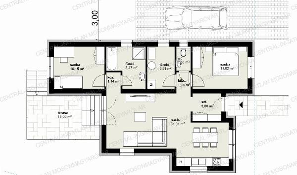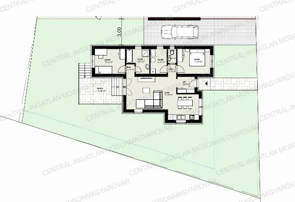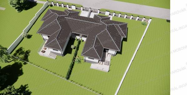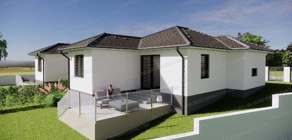 Egyedi adottságú, új építésű ajánlat a CENTRÁL-INGATLAN kínálatában! Közvetlenül Mosoni-Dunára néző, kiépült kertvárosi részen (nem lakóparkban!), új építésű, 3 szobás családi házat kínálunk. A házhoz fedett kocsibeálló tartozik. -A kis forgalmú, aszfaltozott utcában épülő, 79.43m2 hasznos alapterületű (lakóterület 71.93m2+ terasz 15m2) családi ház saroktelek bal oldalára épül, amely két utcafronttal rendelkezik. A családi házhoz 431m2 telekhányad tartozik, ami a mai igényeknek pontosan megfelel. -A saroktelekre két családi ház épül, önálló telekkel, bejárattal. A családi házakhoz fedett kocsibálló készült amit a vételár tartalmaz. A jövőben a cserépfedéssel fedett kocsibaálló könnyen garázzsá is alakítható. -A ház formája modern, letisztult stílusú tervezés eredménye. A belső elosztás is rendkívül ideális. A földszintes házban megtalálható a nappali-étkező-konyha mellett 2 tágas hálószoba, továbbá nagy méretű fürdő, önálló wc-vel és előszoba helyiség is. -A nappaliból egy 15m2-es teraszra tudunk kilépni. Opcionális lehetőségként, némi plusz költséggel a terasz bővíthető, később befedhető. -A műszaki tartalom magas. Kiváló anyagok felhasználásával, profi kivitelezésben készül minden. A házat egy tapasztalt, sok hasonló referenciával rendelkező vállalkozás készíti. -Lehetőség van napelem előkészítésre vagy teljes rendszerre kiépítésére, ezt a vételár nem tartalmazza. -Külső nyílászárók: Kömmerling márkájú, 5 légkamrás profilú, 3 rétegű üvegezéssel készülnek. Igény esetén redőnnyel vagy redőny előkészítéssel. -A fűtés kondenzációs gázkazánnal készül, meleg-víztárolóval, ezzel állandó hőmérsékletű meleg vizet kapunk. A családi ház padlófűtéssel kerül átadásra. A fürdőben elektromos partonnal szerelt törölközőszárítós radiátor is felkerül. Teljes csövezés Henco márkájú alu-betétes, műanyag csövezéssel készül. -A ház 30-as porotherm rendszerű téglából készül 15 cm-es homlokzati szigeteléssel. Aljzatban 13 cm hőszigetelés kerül, födémbe 30 cm hőszigetelés kerül beépítésre. Tetőfedés Bramac cseréppel történik. -A ház déli fekvése kiváló választás, minden évszakban világos. A jó méretű ablakok ezt támogatják, így a téli időszakban sok napenergiát is beengedhetünk a házba. -A ház hasznos alapterülete 79.43m2, lakóterület 71.93m2 + 15m2 terasz (hasznos alapterület= lakóterület+terasz terület fele). -A feltüntetett ár fűtéskész állapotra vonatkozik. Tartalmazza a telekrész árát, teljes külső befejezést, tereprendezést, kerítést (kivéve utcafront), térkövezett, fedett kocsibeállót és járdát, belső fűtéskész állapotot. -A kulcsrakész befejezésre is van lehetőség. Készültségi szinttől függően változtatás, opcionális átalakítás, extra kérések is megvalósíthatóak. -A telekre két családi ház kerül, egymástól távolabb elhelyezve, kerítéssel elválasztva, jogilag rendezve. Ez az ingatlanvásárlás illetékmentes (hasonló meglévő ingatlannál kb 3-3.5 millió Ft lenne az illeték)! -Kérhető plusz költséggel: redőny, további térkövezés, napelem, hőszivattyú, utcafronti kerítés, stb. Vízparti elhelyezkedés, kiváló lokáció, minőségi kivitelezés. Tervezett átadás lekötéstől függően 2026 II-III. negyedév. Amennyiben a hirdetett ingatlan vagy kínálatunkban lévő bármelyik ingatlan felkeltett figyelmét keressen a megadott elérhetőségeken! Ingyenes, bankfüggetlen hitelügyintézést biztosítunk.