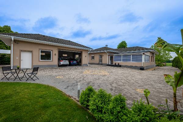ÁLOMHÁZ ELADÓ PÁPA CSENDES KÜLVÁROSÁBAN! 160 m² lakótér + 88 m² télikert | 2950 m² parkosított kert Költözz be egy olyan otthonba, ami minden nap luxus nyaralás érzését nyújtja! Ez az igényesen felújított, 2005-ben épült családi ház nemcsak egy ház — életstílus. Tágas, világos terek, amerikai konyhás nappali, elegáns étkező, szinteltolásos nagy nappali és prémium kényelmi funkciók várnak rád: 3 hálószoba beépített szekrényekkel Padlófűtés + radiátoros fűtés, vegyes tüzelésű kazán Többzónás klíma Központi porszívó rendszer 80 literes elektromos bojler KÜLTÉRI EXTRÁK: • 88 m²-es télikert — egész évben természetközeli kikapcsolódás • 12 m²-es medence — fúrt kútról táplált, 7 zónás Hunter öntözőrendszerrel övezett kert • 80 m²-es automata napernyős terasz — szélérzékelővel • 60 m²-es kétállásos garázs (kis konyhával, WC-vel, Hörmann kapuval) • Térkövezett autómosó magasnyomású mosóval • Távirányítós kapu • 60 m²-es tároló faház • Grillsarok • 300 literes esővíztartály Plusz: minden zár egy kulccsal nyitható a maximális kényelem érdekében! Ez a ház nem csupán ingatlan — egy biztonságos, kényelmes otthon, ahol élmény élni! A fotók magukért beszélnek, de élőben még lenyűgözőbb. Ne maradj le róla! További információért és megtekintésért hívj bizalommal! DREAM HOUSE FOR SALE IN THE QUIET SUBURBAN OF PÁPA! 160 m² living space + 88 m² winter garden | 2950 m² landscaped garden Move into a home that gives you the feeling of a luxurious vacation every day! This tastefully renovated family home, built in 2005, is not just a house — it’s a lifestyle. Spacious, bright spaces, living room with American kitchen, elegant dining room, large living room with split-levels and premium comfort features await you: - 3 bedrooms with built-in wardrobes - Underfloor heating + radiator heating, mixed-fuel boiler - Multi-zone air conditioning - Central vacuum cleaner system - 80-liter electric boiler OUTDOOR EXTRAS: • 88 m² winter garden — year-round relaxation close to nature • 12 m² pool — garden fed by a drilled well, surrounded by a 7-zone Hunter irrigation system • 80 m² automatic sunshade terrace — with wind sensor • 60 m² two-car garage (with small kitchen, toilet, Hörmann door) • Paved car wash with high-pressure washer • Remote-controlled gate • 60 m² storage wooden house • Barbecue corner • 300 liter rainwater tank Plus: all locks can be opened with one key for maximum convenience! This house is not just a property — it is a safe, comfortable home where you can live! The photos speak for themselves, but it is even more impressive in person. Don't miss out! For more information and viewing, please call us! TRAUMHAUS ZU VERKAUFEN IM RUHIGEN VORORT VON PÁPA! 160 m² Wohnfläche + 88 m² Wintergarten | 2950 m² angelegter Garten. Ziehen Sie in ein Zuhause ein, das Ihnen jeden Tag das Gefühl eines luxuriösen Urlaubs gibt! Dieses geschmackvoll renovierte Familienhaus aus dem Jahr 2005 ist nicht nur ein Haus – es ist ein Lebensstil. Großzügige, helle Räume, Wohnzimmer mit amerikanischer Küche, elegantes Esszimmer, großes Wohnzimmer mit Split-Level-Bereich und gehobener Komfortausstattung erwarten Sie: - 3 Schlafzimmer mit Einbauschränken - Fußbodenheizung + Radiatorenheizung, Mischbrennstoffkessel - Mehrzonen-Klimaanlage - Zentrale Staubsaugeranlage - 80-Liter-Elektroboiler EXTRAS FÜR DEN AUSSENBEREICH: • 88 m² Wintergarten – ganzjährige naturnahe Entspannung • 12 m² großer Pool – Garten, der von einem Bohrbrunnen gespeist wird und von einem 7-Zonen-Bewässerungssystem von Hunter umgeben ist • 80 m² automatische Sonnenschutzterrasse – mit Windsensor • 60 m² Doppelgarage (mit kleiner Küche, WC, Hörmann-Tor) • Gepflasterte Autowaschanlage mit Hochdruckreiniger • Ferngesteuertes Tor • 60 m² großes Lagerholzhaus • Grillecke • 300 Liter Regenwassertank Plus: Alle Schlösser lassen sich mit einem Schlüssel öffnen – für maximalen Komfort! Dieses Haus ist nicht nur ein Anwesen – es ist ein sicheres, komfortables Zuhause, in dem Sie leben können! Die Fotos sprechen für sich, aber in echt ist es noch beeindruckender. Verpassen Sie es nicht! Für weitere Informationen und Besichtigungen rufen Sie uns bitte an!