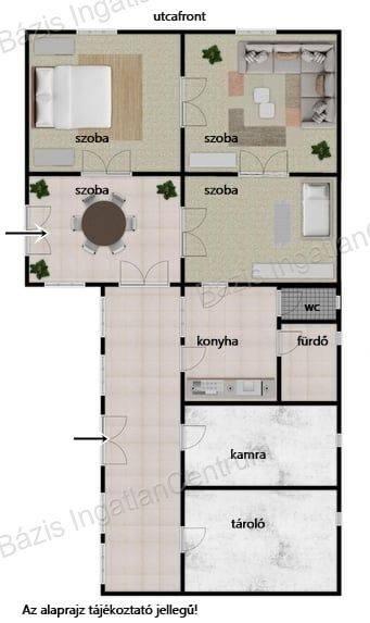 Bács-Kiskun megye Bácsbokod településen eladó egy 1900-ban épült, 130 nm-es, klasszikus parasztház. Az ingatlan beton alapra épült, tégla szerkezetű. Található benne három nagy szoba, tágas konyha-étkező, fürdőszoba+WC, kamra. A széles gangos folyosón további tároló helyiségek és műhely található. Az épület egy része alatt 60 nm-es pince húzódik. A fűtésről gázkazán gondoskodik, hőleadása konvektorokon keresztül történik. Ezen kívül kályhás fűtésre is van lehetőség. A világos, jó elosztású családi ház járólapos és hajópadlós burkolattal van ellátva. Az ingatlan 1320 nm-es, összközműves telken helyezkedik el. Hátul további állattartásra alkalmas ólak, füstölő található. A hátsó telekrészen fiatal gyümölcsös lett kialakítva, a már termő barack-, meggy- és almafák mellett. Vevő ügyfeleinket díjmentes hitel tanácsadással és teljeskörű ügyintézéssel segítjük az ingatlan megvásárlásában. Bővebb információért keressen bizalommal!