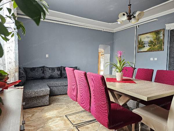 Bács-Kiskun megye Kiskunhalas Tabán városrészben eladó egy 131 m2-es két lakrészből álló családi ház. A vegyes falazatú főépületben három szoba, egy napfényes nappali, egy konyha, egy fürdőszoba WC-vel, valamint egy előszoba kapott helyet. A fűtésről vegyestüzelésű kazán gondoskodik radiátoros hőleadással. A villanyhálózat korszerűsítése 2021-ben megtörtént. Az ingatlan műanyag nyílászárókkal rendelkezik, az utcafronti ablakokon redőny található. A főépület egy része szigetelést kapott az elmúlt években. A 30 m2-es melléképületben egy szoba, egy nappali+konyha, illetve egy fürdőszoba+WC lett kialakítva. Ebben a lakrészben a fűtést a vegyestüzelésű kazán biztosítja, de alternatív lehetőségként egy kandalló is rendelkezésre áll. A villany- és vízvezetékeket néhány hónapja cserélték ki. A melléképület szintén műanyag nyílászárókkal rendelkezik, valamint 10 cm-es szigetelést kapott. Az ingatlan egy rendezett, 388 m2-es összközműves telken helyezkedik el. Parkolásra az udvarban van lehetőség. Bővebb információkért várom hívását.