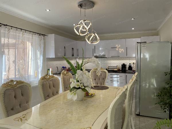 Bács-Kiskun megye Kiskunhalas, Felsővárosában, felújított, 192 m2-es családi ház eladó. A tégla falazatú ingatlanban megtalálható egy 40 nm-es nappali, négy szoba, konyha, közlekedő, fürdőszoba+WC, társalgó és erkély. Az otthon melegét jelenleg vegyestüzelésű kazán biztosítja, de lehetőség van gázcirkós fűtésre is. A családi ház hűtéséről klíma gondoskodik. A világos, jó elosztású családi ház járólapos, padlószőnyeges és laminált burkolattal van ellátva. Az ingatlan teljes hőszigetelése, külső nyílászárók cseréje megtörtént. A ház világos, tágas, jó elrendezésű, igényes, beépített bútorokkal, berendezésekkel rendelkezik, amelyek vételárrészét képezik. A 465 nm-es gondozott, összközműves telken, garázs és melléképületek megtalálhatóak. Öntözésre fúrtkútról van lehetőség. Vevő ügyfeleinket díjmentes hitel tanácsadással és teljes körű ügyintézéssel segítjük az ingatlan megvásárlásában. Bővebb információért keressen bizalommal!