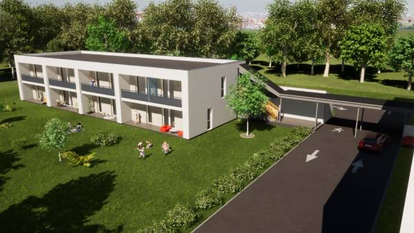 Gyermekváros Lakóparkban kínálunk megvételre lakásokat, Komárom belterületén, a Dunától délre, központ közeli, kisvárosias lakóterületen! Az épületegyüttes hatalmas, közel 23 ezer négyzetméter területen fekszik, körülötte zöldterülettel és magán kertekkel. Az épületegyüttes különböző egységekből áll, összesen 7 épületből, A, B és C jelöléssel. Az "A" jelű épület 4 egységből áll, melyben lakások, tárolók, üzletek és étterem kerül kialakításra. A B jelű lakóépület kétszintes, melyben a földszinten 4, az emeleten 5 lakás lesz. A lakóegységek kis alapterületűek, garzon és nappali + 1 hálószobás kialakítással, 33 és 52 nm-en. A földszinten lesz egy közös tároló. A földszinti lakások kertkapcsolatosak, melyekhez teraszokat terveztek, az emeleten erkélyek vannak. Ez a lakás a B épület földszintjén lévő 52 nm-es, L1-es lakás, amerikai-konyha-nappali + hálószoba kialakítású, 13,5 nm-es erkéllyel, közel 30 nm-es terasszal és majdnem 300 nm-es saját kertkapcsolattal. A C1 és C2 jelű épületek sorházi jelleggel, földszintes, kis privát kertes kialakítással, épületenként 8-8 lakásból állnak. A lakások szerkezetkész állapotban kerülnek értékesítésre, mely a következőket tartalmazza: - bejárati ajtó - vizes blokkok kialakítása: fürdőszoba zuhanyzóval, villanybojlerrel, törölköző szárítós radiátorral, wc-vel és mosdóval, csap kiállásokkal - a lakások fűtéséről és hűtéséről hűtő-fűtő klíma fog gondoskodni - konnektorok és villanykapcsolók kiállásának kialakítása Az erkély, loggia és a földszinti lakásokhoz tartozó kertek nem képezik a vételár részét. Az épület külső homlokzata 15 cm-es EPS szigeteléssel lesz ellátva. A homlokzaton megjelennek még antracit színű acél zártszelvényből készülő korlátok, térelválasztó paravánok, melyekben homokfúvott biztonsági üveg elemeket helyeznek el. A nyílászárók hőszigetelt alumínium szerkezetűek, antracit színben. A lakáshoz megvásárolható saját parkoló, bruttó 1.200.000,-Ft.-ért, mely a lakópark magánútján található és sorompóval lesz elzárva. A teljes területen az épületek megközelítését szolgáló belső utak, járdák, parkolók, és zöldfelületek is megtervezettek. Közösségi terek lesznek kialakítva: játszótér árnyékolva, a felnőttek és gyerekek számára sportolásra alkalmas terület fitnesz eszközökkel, asztalitenisz asztallal, 50 m hosszú futófelület. A területen padok, asztalok, hulladékgyűjtők, ivókutak, és térvilágító lámpatestek kerülnek elhelyezésre. Ezen kívül a három személybejáró mellett zárható kerékpár tároló is kialakításra kerül. A zöldfelület beültetése is tervben van, melyben megtalálhatók lesznek lombhullató és örökzöld fák, cserjék, talajtakaró növények, gyepfelület, valamint függőleges zöldfalak futónövényekkel futtatva. A terület északkeleti oldalán gyümölcsfák lesznek telepítve, fűszerkerttel és pihenő padokkal. A kerítések mellett zaj és porfogóként, valamint levegőszűrőként sövényeket ültetnek. Az átadás várható időpontja 2026. II. negyedév. Bővebb tájékoztatásért kérem keressen bizalommal, részletes műszaki leírás rendelkezésemre áll, melyet személyes érdeklődés esetén bemutatok. Válassza ezt a remek lehetőséget akár beruházásként, hiszen nagy igény mutatkozik a kiadható kis lakások iránt. Természetesen családok új otthonaként is ideális választás. Adatbázisunkban számos eladó-kiadó ingatlan közül választhat. Személyre szabott ügyintézéssel, ügyvédi háttérrel állunk ügyfeleink rendelkezésére. Minden egy helyen, az ingatlan bemutatásától a birtokba adásig! Díjmentes és bankfüggetlen hitelügyintézés! Hitelminősítés a Fő téri irodánkban a hét minden napján. Várjuk hívását!