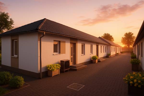 Új építésű sorházi lakások Kiskunlacházán – saját kerttel és terasszal! Kiskunlacháza központi, mégis csendes részén kínálunk 73 m²-es, modern sorházi otthonokat, 235 m² saját kertrésszel és 16 m²-es terasszal. Elosztás: Amerikai konyhás nappali 3 hálószoba Fürdőszoba + külön WC Saját gépészeti helyiség Műszaki tartalom: Megújuló energiás, hőszivattyús fűtésrendszer 30-as Leier főfalak, 10 cm homlokzati hőszigetelés 20cm kőzetgyapot szigetelés a tetőszerkezetben Műanyag, 3 rétegű nyílászárók Hideg- és melegburkolatok választhatóan (értékhatár szerint) Saját utcafronti és telekosztó kerítés Tereprendezés benne az árban