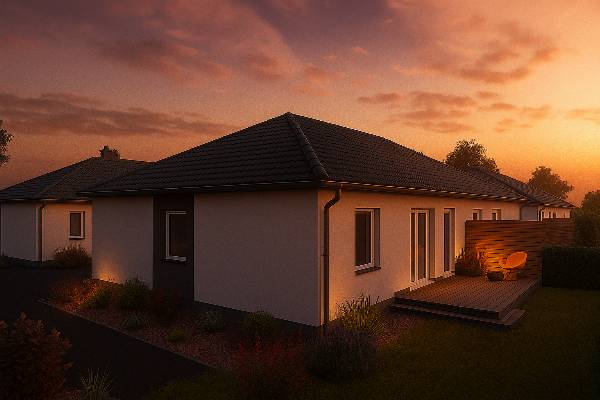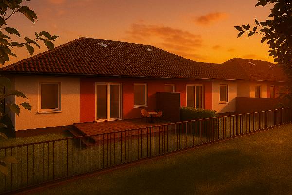 Új építésű sorházi lakások Kiskunlacházán – saját kerttel, terasszal, azonnal költözhetően! Kiskunlacháza központi, mégis csendes részén eladó 8 db modern, energiatakarékos sorházi lakás, saját kerttel és 16 m²-es terasszal. A lakások mindegyike jól átgondolt elrendezésű: amerikai konyhás nappali, 3 hálószoba, fürdőszoba, külön WC, kamra, zárt udvari parkolóval. Elérhető lakások és árak: A/1 – 77 m² – 57.750.000 Ft A/2 – 73 m² – 54.750.000 Ft A/3 – 73 m² – 54.750.000 Ft A/4 – 77 m² – 57.750.000 Ft B/1 – 77 m² – 57.750.000 Ft B/2 – 73 m² – 54.750.000 Ft B/3 – 73 m² – 54.750.000 Ft B/4 – 77 m² – 57.750.000 Ft Főbb jellemzők: 250 m² saját kert jár a szélső ingatlanokhoz / lakás Hőszivattyús padlófűtés, H-tarifás rendszer 3 rétegű műanyag nyílászárók 30 cm-es tégla + 10 cm grafitos hőszigetelés Kőzetgyapot födémszigetelés Hideg–meleg burkolatok választhatóak. Átadás 2026 évi folyamatos átadással. Jogosult minden jelenlegi állami támogatásra