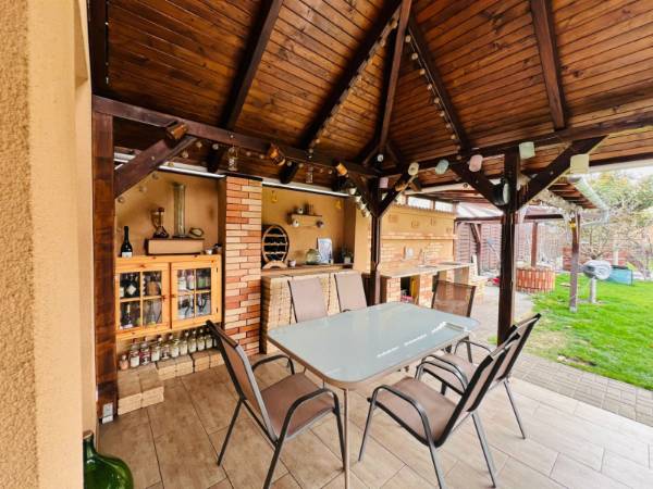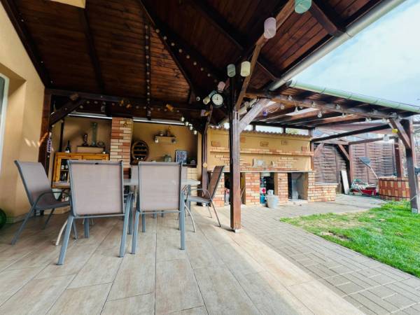 Eladó XVI. kerület Rákosszentmihályi exkluzív családi ház! Hasznos 135 nm+25 nm terasz + 30 nm szigetelt árammal, riasztóval ellátott hátsó épület. Az ingatlan magas műszaki tartalommal rendelkezik: - Víztérrel ellátott kandalló, egy 600 literes puffer tartállyal, ami biztosítja a melegvizet az alsó szint padlófűtésére, a felső szint radiátorjainak - Hűtő-fűtő klímák minden fontosabb helyiségben, H tarifával - Kétállásos, fűtött garázs közvetlen bejárattal a házba - A házban energia takarékos fényforrás ledes megoldású Xiaomi rendszerű okos otthon, telefonról vezérelhető - Riasztórendszer, külső és belső kamera rendszer, telefonról vezérelhető alkalmazással - Automata öntözőrendszer, mely saját fúrt kútról üzemel - Csöpögtetőrendszer a dísznövényekhez - Tágas fedett terasz - Kerti konyha sütögetővel, bográcsozóval és mosogatóval - Eredeti autentikus Erdélyi vörösfenyőből készült 48mm falvastagságú fa dézsafürdő, rozsdamentes fűtőberendezéssel - Minden bútor asztalos által méretre készült, összes berendezést tartalmazza a megadott vételár