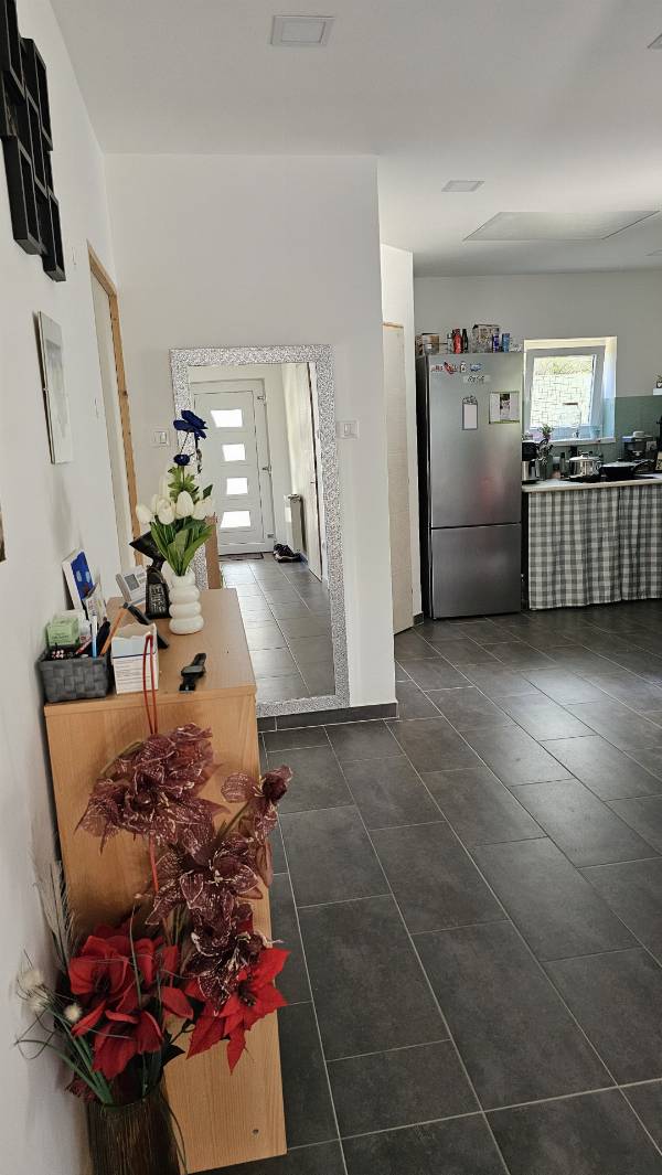 Szárligeten, két generációs családi ház eladó! Szárligeten csendes kis utcában konkrétan az erdő közeli telken eladó egy 70+21 négyzetméteres jó állapotban lévő felújított családi ház. Alapvetően egy tégla kádár kocka amihez hozzá építettek egy 21 négyzetméteres külön bejárattal rendelkező részt. Ez a rész egy szobából egy konyhából és egy zuhanyzó+ vécéből áll, külön bejárattal teljesen felújítva, akadálymentesítve! Tökéletes idősebb vagy mozgássérült családtag elhelyezésére de akár albérletbe is kiadható. A családi ház két nagy szoba ,mindkét szobán az ablakok az utcára nyílnak , van egy külön wc , egy konyha az étkezővel ahonnan terasz ajtón keresztül ki lehet jutni az udvarra ,egy kis kamra ,valamint egy felújítás alatti nagy fürdőszoba sarok káddal befejezési állapot közeli. Az ingatlanban az összes viz vezeték áram vezeték és csatorna csövet cserélve lettek. Az épület tetőszerkezete stabil nincs beázás a falak külső szigetelése folyamatban. A telek elhelyezkedése kiváló tulajdonképpen az erdő árnyékában aszfalt úttal csendes kis utcában és központ közelben. Pár perc sétával az önkormányzat a vasútállomás az iskola az óvoda az orvosi rendelő a gyógyszertár a cukrászda valamint két bolt is elérhető. Szárligeten közvetlen autópálya felhajtó is van a főváros akár 40 perc alatt elérhető, jó az infrastrukturája és kiváló a közbiztonsága.. Ha kérdése van hívjon akár hétvégén is ,nézzük meg együtt az ingatlant és tegye meg ajánlatát.