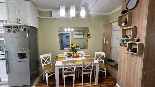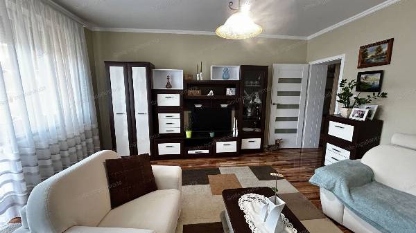 Kiváló lehetőség mindazoknak, akik tágas, azonnal költözhető és alacsony rezsijű otthont keresnek! Nyíregyháza, az Egyetem közvetlen közelében, szigetelt téglaépítésű társasház 3. emeletén eladó egy 90 m²-es, teljes körűen felújított, modern kialakítású lakás a földszinten található garázzsal. A lakás főbb jellemzői: • Amerikai konyhás nappali + 2 hálószoba + gardrób + fürdőszoba + külön WC • É-D-i tájolás, egész nap világos, napfényes otthon • Udvarra néző erkély – csendes, nyugodt környezet • Beépített, gépesített konyha (egyedi tervezés, prémium gépekkel, 2022-ben cserélve) • Energiatakarékos gáz-cirkó fűtés, radiátorokkal + 2 inverteres klíma fűtésre és hűtésre • Kedvező fenntartási költségek – minimális rezsi! • Parkolás a társasház földszintjén található saját garázsban (kb. 15 m²) Felújítás tartalma (2018–2022): ✔ Prémium burkolatok és belső nyílászárók ✔ Radiátorok teljes cseréje, csövek falba rejtve ✔ 3 rétegű hőszigetelt nyílászárók, redőnnyel és szúnyoghálóval ✔ Optikai kábel előkészítve ✔ Új, modern konyhabútor és prémium gépek Miért ideális választás? • Azonnal költözhető, gondosan karbantartott otthon • Ideális családoknak, fiatal pároknak vagy befektetőknek (az Egyetem közelsége miatt kiadásra is tökéletes) • Modern, igényes kivitelezés, mely hosszú távon is értékálló • A garázs külön megvásárolható Eladási feltételek: Lakás eladási ára : 65.900.000,-Ft Garázs eladási ára: 7.500.000,-Ft A lakás csak a garázzsal együtt eladó!