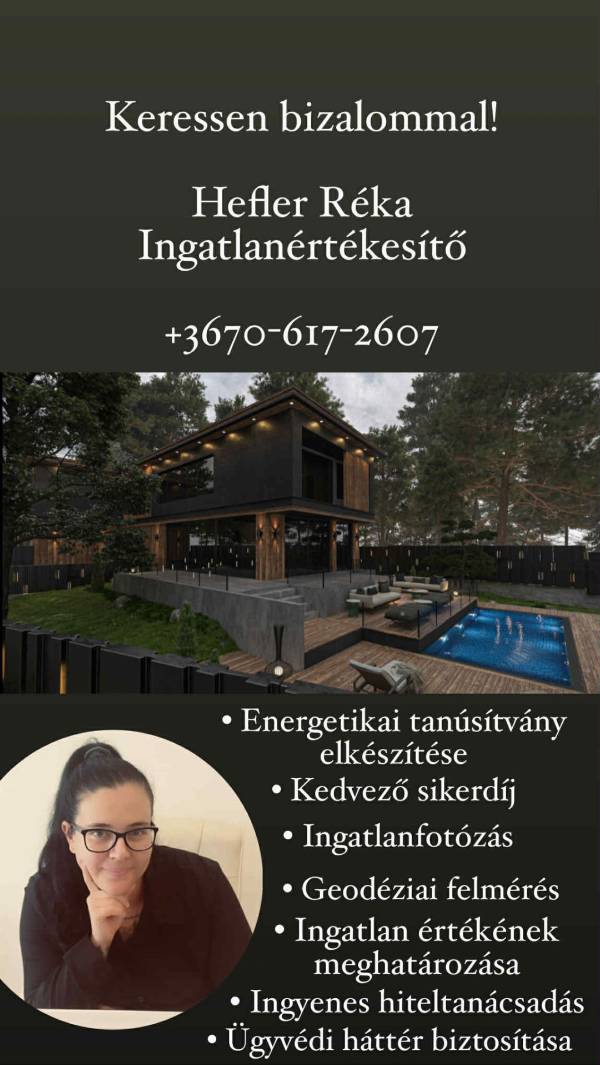 Eladó családi ház Dabas-Gyónon! Eladásra kínálunk egy 80m²-es családi házat, a hozzá tartozó 1326m²-es telekkel Dabas-Gyón csendes, barátságos részén. Főbb jellemzők: • 1970-ben épült, 2018-ban bővítették, és teljes tetőcsere történt, • Beton alap, vegyes falazat, • Új cserép tető, szigetelt födém, • A hozzáépített rész szigetelése is megvan, csak fel kell helyezni – a vételár tartalmazza, • Összközműves, plusz fúrt kút is rendelkezésre áll, • Műanyag nyílászárók, • Fűtési lehetőségek: központi gázfűtés radiátorokkal, fatüzelés, illetve klíma, • Burkolatok: laminált padló, és járólap, Kert, és extrák: • 1326m²-es tágas telek – tökéletes családoknak, kertészkedőknek • Fedett terasz, és kocsibeálló, • Nyugodt környék, barátságos szomszédok, Ez az ingatlan ideális választás lehet családoknak vagy azoknak, akik nagy telekkel rendelkező házat keresnek kiváló környéken. Dabas város egyik városrésze, Budapesttől kb. 30km-re, könnyen megközelíthető az M5-ös autópályán. Csendes, családias környezet jellemzi, jó közlekedési kapcsolatokkal. Érdekességei közé tartozik a Gyóni Géza Emlékház és szoborpark, valamint a környék horgásztavai és kerékpárútjai. A település békés hangulata, zöldövezeti részei és közösségi programjai vonzzák a családokat és a nyugodt életre vágyókat. Ha szeretne többet megtudni vagy megtekinteni az ingatlant, keress bizalommal! Hefler Réka +36-70/617-2607