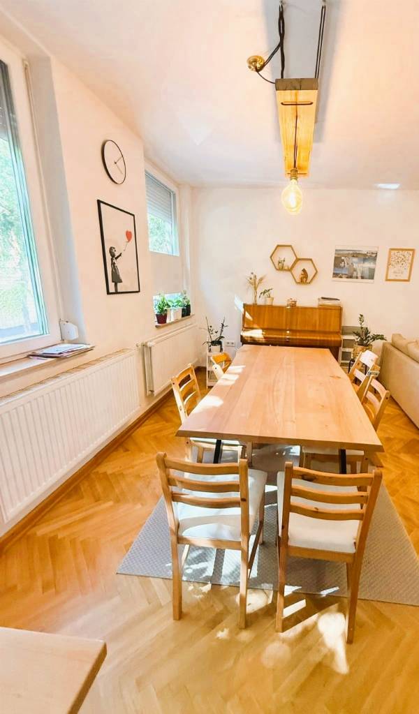 Eladó Pécs belvárosának szélén, a Hunyadi János utcában egy 91,5 m²-es, belső kétszintes lakás. A belváros nagyjából 20 perc sétára elérhető így nem kell mindig autóban vagy buszon ülni. A környéken megtalálható iskola, óvoda, bolt, rendelő illetve a Széchenyi tér ami szintén gyalogosan is könnyen elérhető. Ideális választás azoknak, akik nyugodt életteret keresnek, közel a város szívéhez Az alsó szinten található egy világos nappali étkezővel, amely ideális lehet vendégek fogadására vagy a családdal együtt töltött idő törzshelye is kehet. A konyhája egy egyedi, tömör bükkfából készült bútorral van, felszerelve ahol igazán öröm lehet az ünnepi vacsora vagy a mindennapi reggeli elkészítésére is illetve a konyhához tartozik egy kisebb kamra, amely plusz pakolási lehetőséget kínál. Valamint található még itt egy előszoba és egy külön WC is. Az emeleten található a két hálószoba valódi fa parkettával, egy modern fürdőszoba, amelyben kialakításra került egy infra szauna igényeinek megfelelő aljzat is, bár a szaunát már az új tulajdonosnak kell elhelyeznie. A fürdőszobában található még egy dupla mosdó fűtött tükörrel. A felső szinten található a kazánház is, amely tárolóként is használható. Télen az otthon melegét gázcirkó, nyáron pedig a kellemes hőmérsékletet egy klíma berendezés biztosítja. Ez a lakás nemcsak esztétikus, hanem átgondolt kialakítású és elosztású, korszerű műszaki megoldásaival is hosszú távon kényelmes otthon lehet. A lakáshoz tartozik még egy kisseb udvar, amely a csendes Péter utcára néz. Ez az udvar így kellemes lehet, akár egy délutáni pihenésre vagy grillezésre is az autók zajától szinte teljesen elszigetelve. illetve lehetséges vásárolni egy 26 m²-es garázst, amelyben ki lett alakítva elektromos autónak az igényinek megfelelő aljzat is és egy plusz kocsi beálló, melynek irányára: 11,9 M Ft. A 2021-es évben nagyobb felújítások is történtek, például teljes elektromos hálózatcsere, elrejtett fűtéscsövek, háromrétegű, hő- és hangszigetelő nyílászárók, valamint az emeleten solar hő védő üvegezés készült. Ideális választás lehet fiatal pároknak vagy akár kisebb család számára is. Ha úgy gondolod, hogy neked lenne az ideális választás, akkor keresd bizalommal a megadott elérhetőségeken!