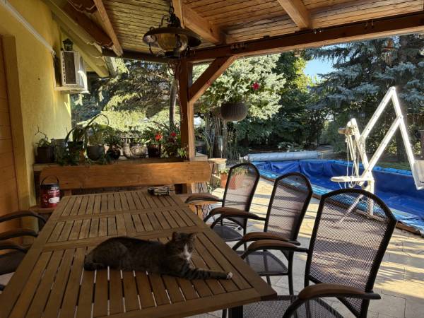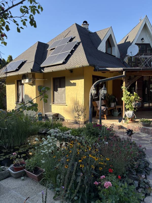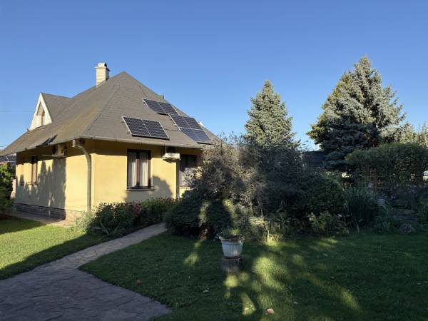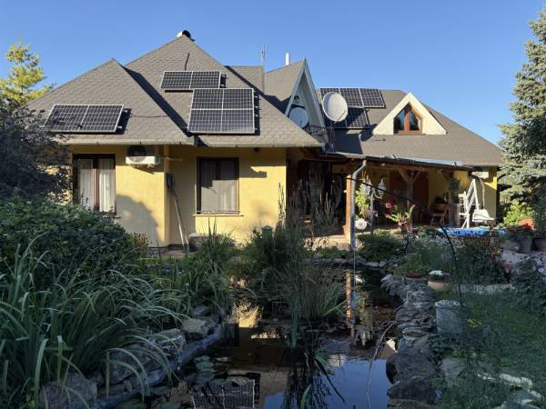 Eladó családi ház Zsámbékon – akadálymentesített földszinttel, medencével és gyönyörű kerttel! Zsámbék csendes részén eladó egy 233 m² hasznos alapterületű, tetőteres családi ház, amely egy 1440 m²-es gondozott telken helyezkedik el. A ház eredetileg a 90-es évek végén épült, majd 2009-ben bővítésen és átalakításon esett át, hogy a mozgáskorlátozott tulajdonos számára is kényelmes, akadálymentes otthon legyen. A ház jellemzői: Hasznos alapterület: 233 m² Földszint: nagyméretű nappali, külön konyha, kamra, étkező, 2 hálószoba, akadálymentesített fürdőszoba, gardróbszoba, előszoba, wellnes helyiség szaunával, merülő medencével és wc-vel, mely a kertből is megközelíthető! Emelet: Az emeletre kényelmes lépcsősor vezet, ahol kialakításra került, 3 nagyméretű hálószoba, háztartási helyiség, fürdőszoba. Garázs: 42 m²-es Műszaki paraméterek: 30-as Porotherm tégla falazat rajta 5 cm-es dryvit szigeteléssel, válaszfalak Ytong tégla. Fűtése gáz kazánról megoldott radiátoros hőleadókkal + cserépkályha. A hűtésről klíma gondoskodik. 3 kw-os napelemes rendszer kiépítve a tetőn. Fűtésköltsége igen alacsony, 14 ezer forint/ hó. Nyílászárók minőségi fából készültek. Tetőszerkezet cserép fedéssel készült. Kert és külső rész: Az ingatlan egyik legnagyobb vonzereje a parkosított, gondozott kert, amely valódi kikapcsolódást nyújt: • Medence napozóterasszal a nyári feltöltődéshez • Kerti tó vízinövényekkel, amely természetközeli, nyugodt hangulatot teremt • Fedett terasz és nyári konyha kemencével, borospincével baráti és családi összejövetelekhez • Gazdag növényzet, dísznövények, fenyők és virágok, melyek egész évben szép környezetet biztosítanak • Kisebb gazdasági udvar (pl. tyúkketrec), amely lehetőséget ad az önellátó életmódra Összegzés: Ez az ingatlan tökéletes választás mindazoknak, akik tágas otthont, akadálymentes kényelmet és különleges kertet keresnek. A ház elrendezése, a 2009-es átalakítás, valamint a medencével és tóval tarkított kert együtt egy igazán különleges, élhető otthont biztosít. Az ingatlan közlekedés szempontjából is rendkívül kedvező helyen található. Az M1 autópálya mindössze néhány perces autóúttal elérhető, így Budapest kb. 30–40 perc alatt megközelíthető, ami ideális azok számára, akik a fővárosban dolgoznak, de nyugodt, kertvárosias környezetben szeretnének élni. A településen belül buszjáratok is segítik a közlekedést, így a közeli városközpont, bevásárlási lehetőségek, iskolák és óvodák is könnyen elérhetők. Amennyiben felkeltettem érdeklődését, hívjon bizalommal a hét minden napján! Köszönöm, hogy időt szánt hirdetésemre, sikeres ingatlanvásárlást kívánok!