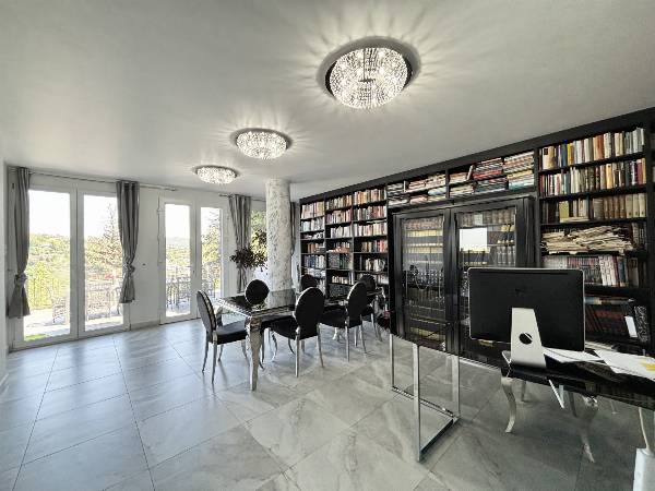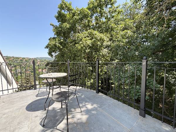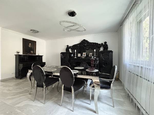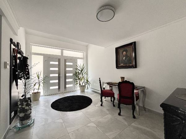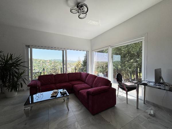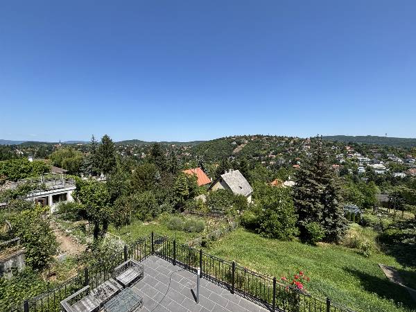 Kivételes panoráma, prémium minőség, exkluzív élettér, tágas terek és alacsony fenntartási költségek! Örök panoráma a budai hegyekre, exkluzív életérzés, luxus kivitelben, rendkívül alacsony fenntartási költségekkel! Budapest és Buda egyik legelegánsabb részén, a II. kerületben, egy csendes, békés, utcában eladó 947 m2-es, örök panorámás telken egy teljes körűen, gyönyörűen felújított, akár több generáció kialakítására alkalmas, 3 szintes, 393 m2-es családi ház ( 6 db szobával, 3 db fürdőszobával ) 4 db panorámás terasszal. A ház 2000-ben épült, a telek adottságaiból kifolyólag az alapozás megerősített vasbeton, lemez, pont és sávalapozás, víz- és pára elleni szigetelésekkel és támfalakkal megerősítve. A teherhordó szerkezet 30-as Porotherm téglából készült, 12 cm-es dryvit szigeteléssel, monolit vasbeton födémmel, lépésálló szigeteléssel. 2021-ben egy teljes körű, prémium minőségű, külső, belső és műszaki felújítást kapott az ingatlan. Nagyméretű, 3 rétegű, hő- és hangszigetelt nyílászárók kerültek beépítésre. A fűtés, hűtés és meleg víz ellátásról egy modern és takarékos Gree hőszivattyú gondoskodik, fan-coil, illetve padló- és mennyezet fűtéssel, valamint az alsó szinten található dolgozó szobában található egy hangulatos kandalló. A hőszivattyú "H" tarifás villanyóráról működik, ezért ennek a nagy háznak igen kedvezőek a fenntartási költségei. Téli időszakban sem haldja meg az 50 000 Ft-ot. A biztonságért egy komplett kamerarendszer és egy mozgás,- és nyitásérzékelős riasztórendszer felel, amely örző,-védő szolgálathoz van bekötve. A motoros nagykapun bejutva, a térkövezett kocsibeálló 3 autónak biztosít helyet, valamint a ház előtti térkövezett közterületen parkolhat. Napelem, jacuzzi és szauna előkészítés megtörtént, így az új tulajdonos saját ízlése szerint könnyen kialakíthatja ezeket az extrákat. A telek lejtős adottságainak köszönhetően 3 különböző szintről van bejárat az ingatlanba, így akár több generáció kialakítására is alkalmas, illetve otthoni munka esetén az ügyfeleit elszeparáltan fogadhatja. Az ingatlan elhelyezkedése kiváló, elit környéken található, csendes, békés utcában. Autóval pár percen belül boltok, üzletek, buszmegálló, Náncsi Néni Vendéglője érhető el. Az ingatlannal és megtekintési időpont kéréssel kapcsolatban hívjon bizalommal!