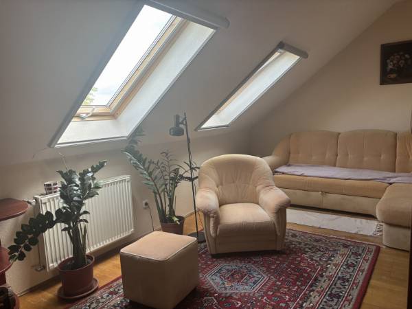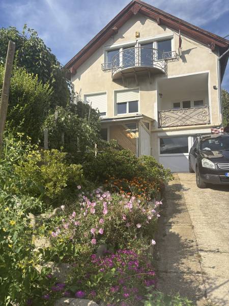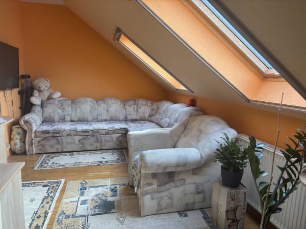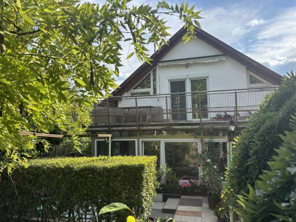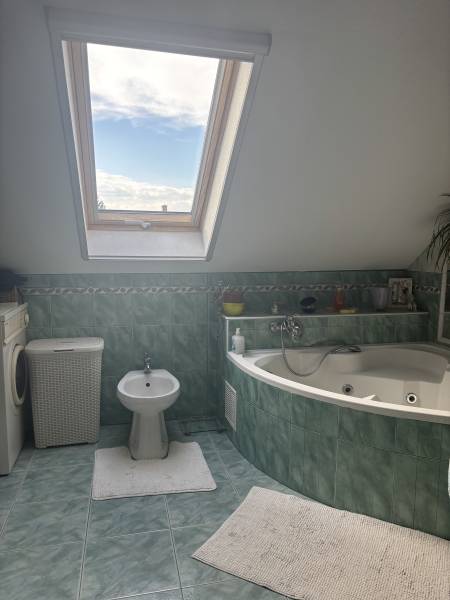 Eladó 3. kerületben az Ürömhegynél kétgenerációs Családi ház. Különösen nagy, 1920 nm-es, enyhén emelkedő telken található, ami csodálatos kilátást biztosít már a ház alsó szintjéről is, az emeletről pedig panorámás kilátása nyílik a szemközti Harsánylejtőre. Déli fekvésének köszönhetően gyönyörű napfényes, világos. A telken egy 220 nm területű, 2 szintes, 2 generációs (két külön lakrésszel rendelkező) ház, egy fedett gépkocsibeálló és a telek végében egy önálló kisház áll. A két generációs ház alsó szintje épült korábban, itt egy garázst és egy légó pincét is találunk, a fentebbi szinten egy 65 nm-es önálló lakrész kapott helyet (2 szoba - étkező -konyha - kamra + terasz elrendezéssel), és ugyanezen a szinten található a nagyobbik lakrész alsó része is (előszoba - WC - konyha+étkező elrendezéssel), valamint egy télikert és egy hátsó terasz. Az emeleten egy közösségi térből nyílik a sarokkádas fürdőszoba és egy külön mellékhelyiség, illetve három külön szoba, a legnagyobb az erkélyes nappali panorámás kilátással. A ház jelen állapotában közepes állapotú , a fenntartási költsége méretéhez képest nagyon kedvező, rezsije kifejezetten alacsony. Jövőbeli tulajdonosa számára a ház jelenlegi állapotában is használható, de egy teljes felújítással hatalmas, modern otthon varázsolható belőle. Méretének és elrendezésének köszönhetően tökéletes több generáció összeköltözésére. A telek nagy méretének köszönhetően alkalmas ikerház építésére is, így befektetők figyelmébe is ajánlom. Ha valaki irodát vagy vállalkozását szeretné otthonával egy fedél alá hozni, ezt itt tökéletesen megvalósíthatja, mert a kerítésen belül több gépkocsi beállására is van lehetőség, valamint a kerítés előtt egy vendégparkoló is kialakításra került.