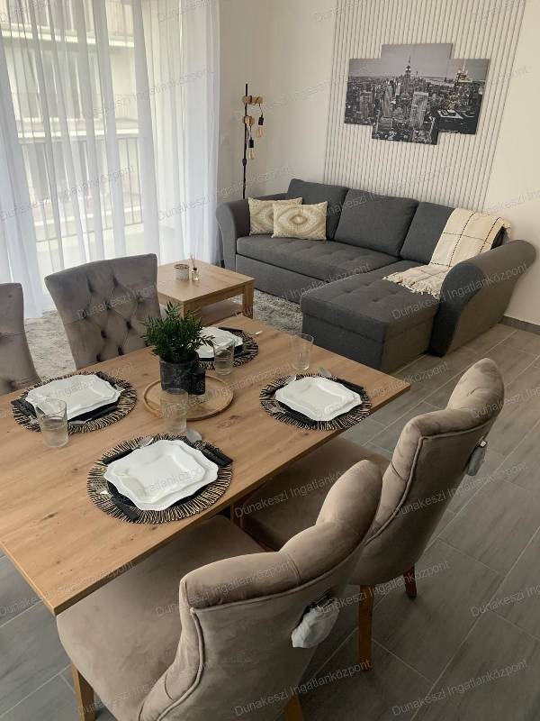 Újpest-Kertvárosban AZONNAL KÖLTÖZHETŐ - TELJESEN BERENDEZETT ÚJ ÉPÍTÉSŰ  A+ ENERGIA BESOROLÁSÚ LAKÁS ELADÓ! Az új építésű projekt utolsó lakása már berendezve felszerelve eladó. A lakás jó elrendezésű, nappali + 2 hálószobás, tágas, világos amerikai konyha-nappalis. WC fürdő külön helyiségben. Nyugati tájolású, a budai hegyekre örök panorámás.  A vételár részét képezi a teljesen felszerelt, minőségi beépített gépekkel ellátott konyha!  Az épület nagyon jó minőségben épített, nagyon sok extrával készült. A fűtést padlófűtésen keresztül oldották meg, de hűtő fűtő klímát is felszereltek. Az alacsony rezsi garantált!  Elektromos redőny minden helyiségben.  Érdemes megnézni!