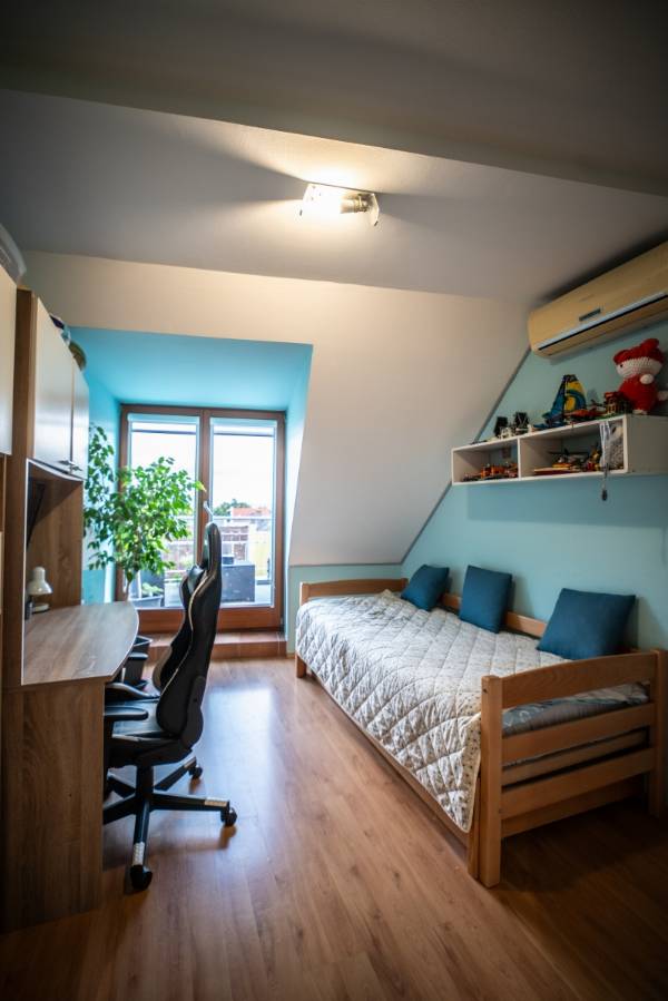 Eladó gyönyörűen felújított, 92 m²-es, 3 szobás ingatlan Pécs Egyetemvárosában, az Alkotmány utcában, mindössze 15 percre a Széchenyi tértől, így minden szükséges egység a közelben megtalálható (bevásárlóközpontok, iskolák, autóbuszmegállók/állomások stb.), mégis csendes, parkos környezetben helyezkedik el. Az ingatlan belül két szintes. Az emeleten található egy fürdőszoba, WC, illetve egy hálószoba, ezek mind különnyílóak. Az alsó szinten található két hálószoba, egy fürdő, egy WC, egy amerikai konyhás nappali, valamint egy előszoba. A konyhában egyedi tervezésű bútor kapott helyet, amely körülbelül 2-3 éve lett beszerelve. Télen az otthon melegét egyedi gázcirkós fűtés, nyáron pedig a kellemes hőmérsékletet a klímaberendezés biztosítja. A lakás teljeskörű vezeték- és nyílászárócserén is átesett, emellett új burkolatok és dizájnvilágítás is került az ingatlanba. Minden prémium minőségű anyagból készült, így csak be kell költözni. A bútorzat külön alku tárgyát képezi. Ideális választás lehet családoknak, külföldi befektetőknek, kiemelt bérbeadásra, vagy hosszú távú befektetésnek prémium bérlői célcsoport számára. Ha megtetszett az ingatlan és megszeretné tekinteni keressen bizalommal a megadott elérhetőségeken.