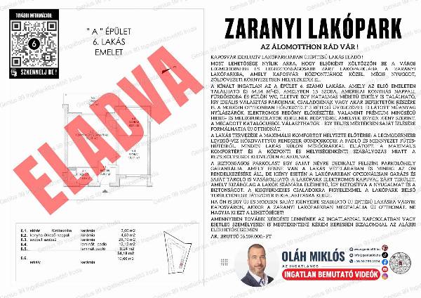ELADVA ! Kaposvár exkluzív lakóparkjában újépítésű lakás eladó ! Most lehetősége nyílik arra, hogy elsőként költözzön be a város legmodernebb és legbiztonságosabb zárt lakóparkjába, a Zaranyi lakóparkba, amely Kaposvár központjához közel, mégis nyugodt, zöldövezeti környezetben helyezkedik el. A kínált ingatlan az A épület 6. számú lakása, amely az első emeleten található és 64,84 m²-es, amelyben 1,5 szoba, amerikai konyhás nappali, fürdőszoba és külön WC, illetve egy hatalmas méretű erkély is található, így ideális választás pároknak, családoknak vagy akár befektetők részére is. A modern otthonban hőszigetelt 3 rétegű üvegezéssel ellátott műanyag nyílászárók, elektromos redőny előkészítés, valamint prémium minőségű hideg- és melegburkolatok kerülnek beépítésre, amelyek egyedi igény szerint, a megadott katalógusból választhatók – így teljes mértékben saját ízlésére formálhatja új otthonát. A lakás tervezése a maximális komfortot helyezte előtérbe: a legmodernebb levegő-víz hőszivattyús rendszer gondoskodik a padló és mennyezet fűtés-hűtésről. Minden lakás külön mérőórákkal ellátott, a maximális komfortért és a központi és helyiségenkénti szabályozás miatt a rezsiköltségek kedvezően alakulnak. A biztonságos parkolást egy saját névre dedikált felszíni parkolóhely garantálja, amely benne van a lakás vételárában és mindig az Ön rendelkezésére áll, de igény esetén a lakóparkban opcionálisan garázs és saját tároló is vásárolható. A lakópark elektromos kapuval zárt terület, amely kizárólag a lakók számára elérhető, így biztosítva a nyugalmat és a biztonságot. A kisgyermekes családokra figyelemmel a lakópark belső területén egy játszótér is kialakításra kerül. Ha Ön is egy új és modern, saját igényeire szabható új építésű lakásra vágyik Kaposváron, akkor a Zaranyi Lakóparkban megtalálja új otthonát. Ne hagyja ki ezt a lehetőséget! AMENNYIBEN TOVÁBBI KÉRDÉSEI LENNÉNEK AZ INGATLANNAL KAPCSOLATBAN VAGY ESETLEG SZEMÉLYESEN IS MEGTEKINTENÉ KÉREM KERESSEN BIZALOMMAL AZ ALÁBBI ELÉRHETŐSÉGEIMEN. Ár.: Bruttó 56.559.000.- Ft Érd: +36302562334 https://genius99.hu/ingatlanok/6706981/ Azonosító: A-6 A weboldalon szereplő információk (képek, szövegek ... stb.) teljes mértékben a szerző jogi tulajdonát képezik. A weboldalon szereplő információkat, adatokat másolni, felhasználni csak a szerző előzetes engedélyével lehetséges. A tévedés, árváltoztatás és elírás jogát előzetes tájékoztatás nélkül fenntartjuk!