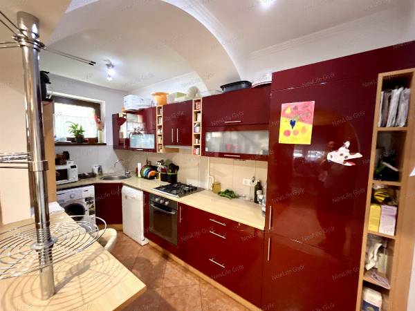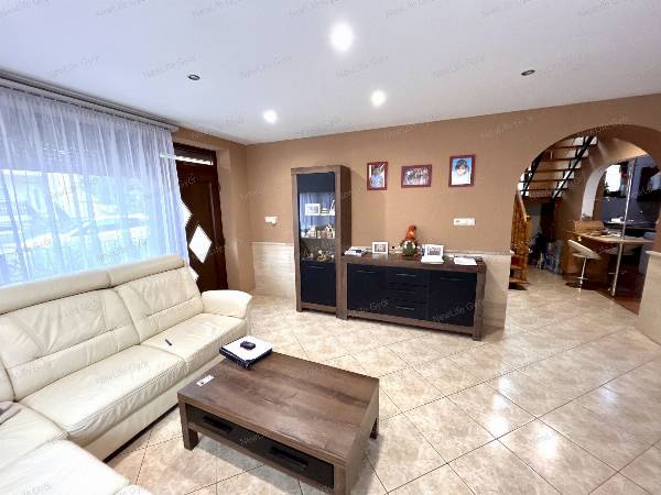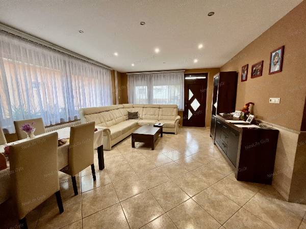 Nagy a család? Akár több generáció szeretne közösen élni? Vagy csak szeretné a vállalkozását otthon végezni? Akkor ne keresgéljen tovább, ez a ház Önre vár! Megvételre kínálok Soprontól 20 km-re, az osztrák határhoz közel, Nagylózson egy nagyméretű, szép állapotú családi házat. A ház téglaépítésű, 30-as Rába téglábl készült, melyre 15 cm-es szigetelés került. A házban 3 rétegű ablakok találhatóak, melyeken aluredőnyök ésszúnyogháló van. A villanyvezetékek rézvezetékek, az áram erőssége 3*25 A, éjszakai áram is van, valamint a hátsó épületekben 380A is megtalálható. A meleget vegyestüzelésű kazán biztosítja (gázkazán is van) radiátoros hőleadókkal. A födém betonfödémes, a ház cseréptetős. A melegvizet gázbojler biztosítja a ház első részében, míg a mosókonyhában villanybojler is rendelkezésre áll. A ház jelenleg három részből áll. Az első házrészben egy nagyméretű amerikai konyhás nappali (a konyharész kicsit elszeparált), egy hálószoba, és egy fürdőszoba van a földszinten. Az emeletre érve 3 nagyméretű szobát és egy fürdőszobát találunk. Az emelet teljesértékű szint, így még szükség esetén van lehetőség a tetőtéret beépíteni további helységek kialakítása végett. A második házrész elérhető a az első lakrészből, de külön bejárata is van. Ez a házrész korábban épült, így ez kisméretű téglából van, míg az első házrész nagyméretűből. A épület hátsó része melléképületekből áll. Itt 3 garázs lett kialakítva, mosókonyha, tárolóhelység, és egy komplett szaunaépület. Mindegyik lebetonozott és járólapozott. A szaunaépületben egy nagyszoba van kialakítva, ahol kényelmesen nyugágyakra le lehet pihenni, vagy barátokkal le lehet ülni borozni vagy kártyázni. A szoba mellett egy nagyméretű szauna lett kiépítve, illetve hátul egy fürdőszoba lett kialakítva. A fűtésről itt a szauna mellett egy nagyméretű cserépkályha gondoskodik. A szaunaépület mellett még egy nagyméretű tárolóhelység és egy hatalmas raktár áll. A kert eddig az épületig teljesen térkövezett. A raktárrész mögött még kisebb fa-illetve állattartásra alkalmas mellékéületek vannak, illetve itt van zölterület. Ez a rész gyümölcsfákkal (alma,szilva, barack, körte) van beültetve. Fúrt kút van az udvaron. A ház tehermentes, gyorsan birtobavehető. Ha szeretné megtekinteni, keressen bizalommal!