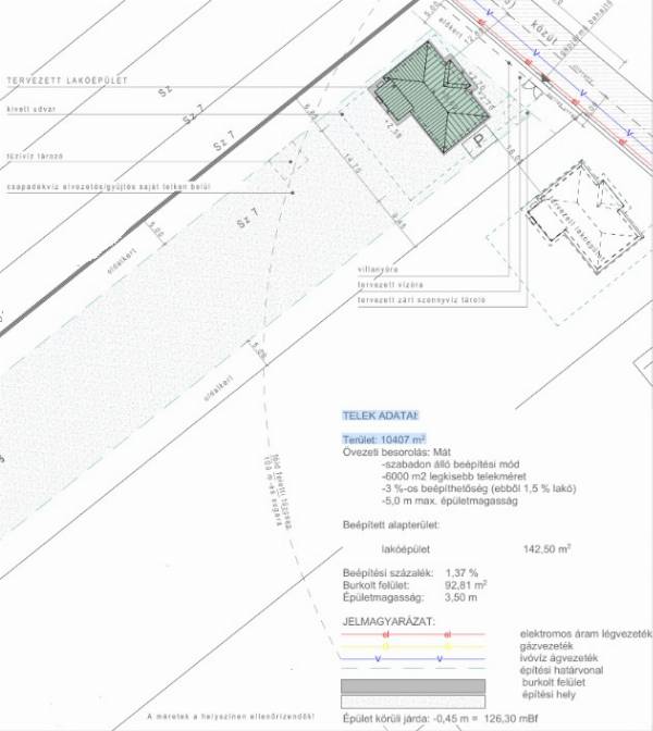 Építési telek eladó! A telek ára tartalmazza a családiház terveit is. BŐVEBB FELVILÁGOSÍTÁSÉRT KÉREM KERESSEN. 1 hektáros külterület építési telek.Kecskemét-Hetényegyházán A területre vonatkozó szükséges jogszabályi változtatások megtörténtek, így beépítésre alkalmas. A telekre tervezett családiház építésének engedélyezése megtörtént. Vezetékes víz és villany az utcában. A telek jellemzői: - besorolás MÁT - 10407 nm, ebből 400 nm kivett udvar - szabadon álló beépítési mód - legkisebb beépíthető telekméret 6000 nm - 3%-os beépíthetőség (1,5% lakó) - 5 m max épületmagasság A tervezett családiház: - 1,37% beépítési % - 142,5 nm alapterület (netto 110,29 nm) - nappali+3 szoba - nagyon jó elrendezésű, élhető terek A teljes tervdokumentáció irodánkban megtalálható ! Szolgáltatásunk közé tartozik -díjmentes hiteltanácsadás -megbízható kivitelezővel tudjuk biztosítani a tervezett ház kivitelezését.