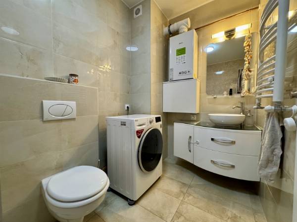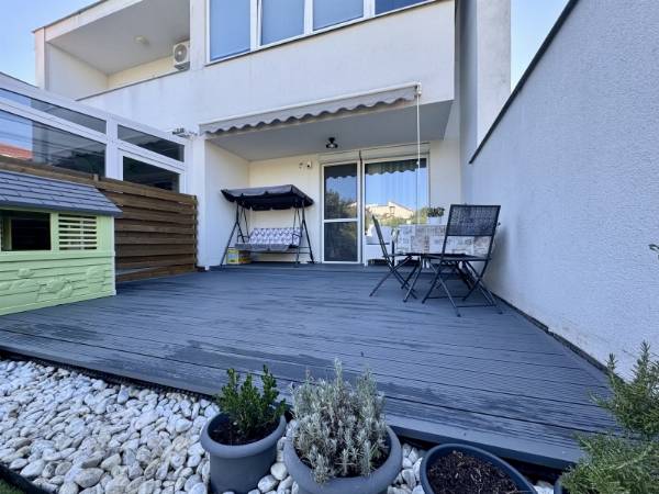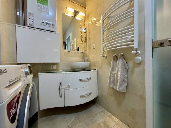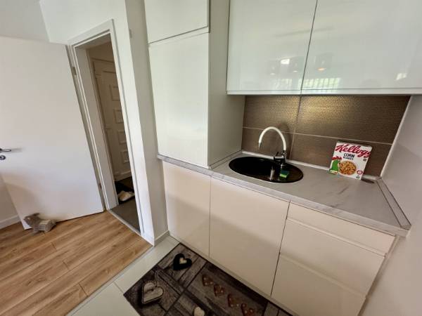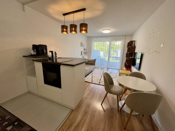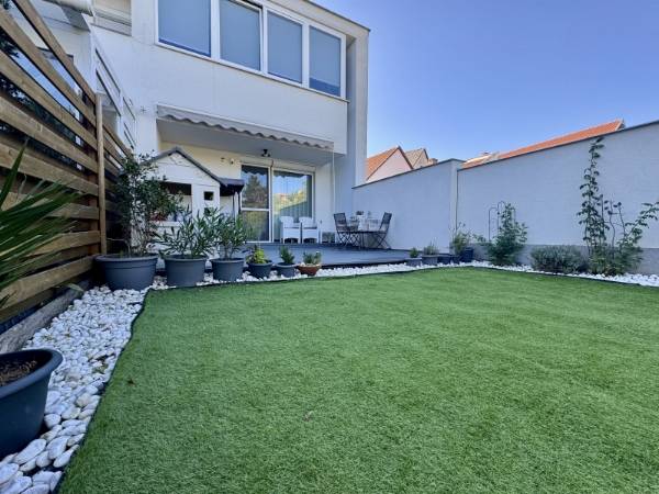Pécs, Mecsekoldal – Egy igazi ritkaság a piacon! Eladóvá vált egy 2020-ban épült, kizárólagos kertkapcsolatos földszinti téglalakás, amely tökéletesen ötvözi a belváros közelségét a Mecsek nyugalmával. Főbb jellemzők: - 4 lakásos társasház - 2020-as építés - Újszerű állapot - 49 m2-es lakótér - 25 m2-es, wpc-vel burkolt és árnyékolóval felszerelt terasz - 140 m2-es, saját, kizárólagos használatú kert - Saját tároló + közös tároló - Teremgarázs beállóhely - Elrendezés: 1 szoba + amerikai konyhás nappali-étkező + fürdőszoba (káddal) wc-vel - Alacsony rezsiköltség - Rendszeresen karbantartott kombi gázkazán, egyedi hőfokszabályzóval - Fürdőszobában padlófűtés - Redőny és szúnyogháló minden nyílászárón - Egyedi tervezésű konyhaszigetes, gépesített konyhabútor (beépített hűtő, mosogatógép, sütő, főzőlap), borhűtő előkészítés, rejtett konnektorok, kerámia mosogató Belső kialakítás: A nappali és a hálószoba laminált parkettával burkolt, míg a konyha, előszoba és fürdőszoba járólapot kapott. A terasz 2025-ben vadonatúj WPC burkolatot kapott. Kültér: A 140 m2-es kizárólagos kert számtalan lehetőséget kínál: legyen szó kerti pihenésről, játékos gyerekekről vagy akár hobbi kertészkedésről. A vételár tartalmazza: - 49 m2-es lakás - 25 m2-es terasz - 140 m2-es kert kizárólagos használattal - Saját és közös tároló - Teremgarázs beálló - Fürdőszoba bútor - Egyedi tervezésű konyhaszigetes, gépesített konyhabútor + bárszékek Ideális otthon mindazok számára, akik a Mecsek csendjét keresik, de nem szeretnének lemondani a belváros közelségéről. További kérdés- és megtekintés esetén keressen bizalommal!