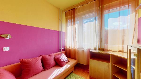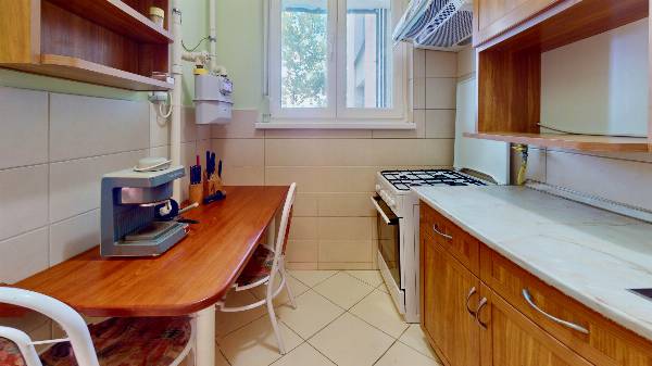 Azonnali költözés lehetőségével eladó Debrecen, Vargakert utcai, 4 emeletes társasház, 3.emeletén egy 2 szobás (13 és 15 m2) + étkezős (10 m2), 61 m2-es, felújított, szép állapotú lakás. Külső nyílászárók cseréje megtörtént, műanyag szerkezetű, hőszigetelt üvegezésű ablakokra, illetve a bejárati ajtó is cserlve lett. Közös költség 13.000.Ft/hó, fűtés házközponti, költségosztóval, melynek és a köztes elhelyezkedésnek köszönhetően az éves fűtési költség 60.000.- Ft alatt van. Tűzhely gázüzemű, saját gázmérővel, melegvíz Ariston típusú, intelligens tárolós bojlerről biztosíttott. Az étkezőben felszerelésre került egy YORK típusú klíma, mely az egész lakás hűtéséről gondoskodik. Felújításra került kompletten a fürdőszoba, konyha, előszoba, WC, a burkolatok, részben a villanyvezetékek. A lakás kedvelt, jó környéken található, a szobák a csendes, belső ősfás park felé nyílnak. Parkolás az utcán lehetséges, mely ingyenes, buszmegálló 100 m-en belül, a város minden irányába közlekedő járatokkal. Bolt, óvoda, iskola sétatávolságban. Az ingatlan per-és tehermentes, 1/1 tulajdon, nem lakott, azonnal költözhető. A fotókon látható ingóságok külön megbeszélés tárgyát képezik.