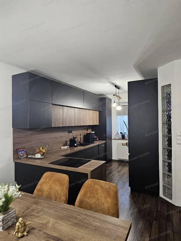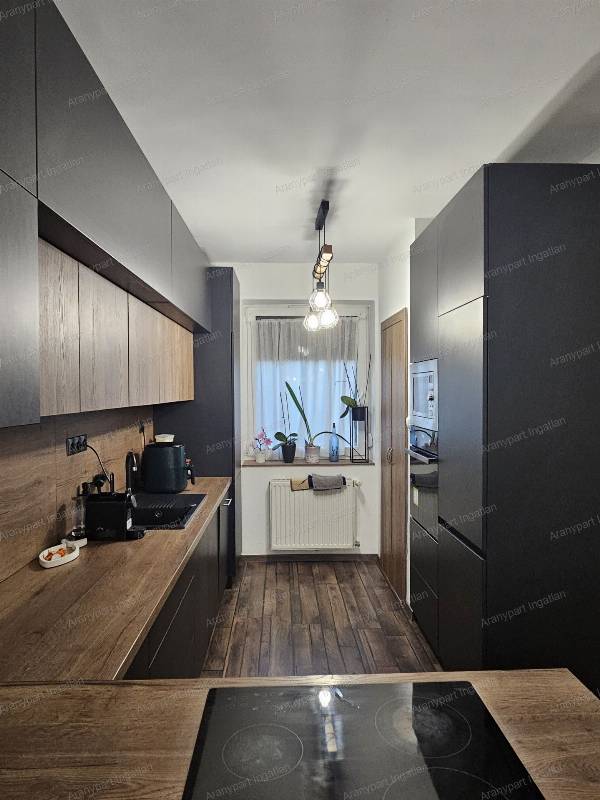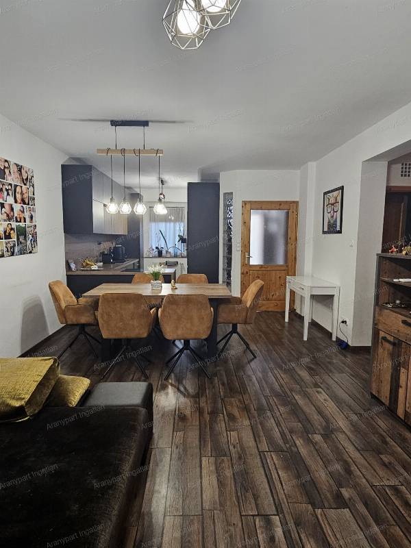 Eladó egy különleges otthon Győr, Ménfőcsanakon, ahol a kényelem találkozik a stílussal! A 2003-ban épült belső két szintes, saját kertkapcsolatos lakást 2020-ban teljes körűen felújították! A felújítás során asztalos által készített, kiváló minőségű bútorokkal lett berendezve, magas kopásállóságú burkolatok a legmagasabb színvonalat képviselik! Elosztása: földszint: tágas nappali-étkező, konyha, spejz, 1 hálószoba, közlekedő, fürdő-wc, előtér tetőtér: 3 hálószoba, gardrób, fürdő-wc, közlekedő Jellemzői: - lakótér: 116 m2 nettó, 133 m2 bruttó - saját kertkapcsolat, terasszal 67 m2 - fűtött garázs 16,76 m2 - 1 db gépkocsi beálló - összközműves - fűtése gázkazán, radiátoros hőleadókkal - a szobák és a nappali fűtő-hűtő klímával felszereltek - műanyag nyílászárók, redőnnyel, szúnyoghálóval ellátva - tágas, világos terek - közös költség: 11.500.-Ft További szolgáltatásaink: díjmentes, bankfüggetlen hitelügyintézés értékbecslés energetikai tanúsítvány ügyvédi ügyintézés biztosítás Hívjon bizalommal, a további részletekért. Pityinger Ágnes +3670-663-3283 Aranypart ingatlan