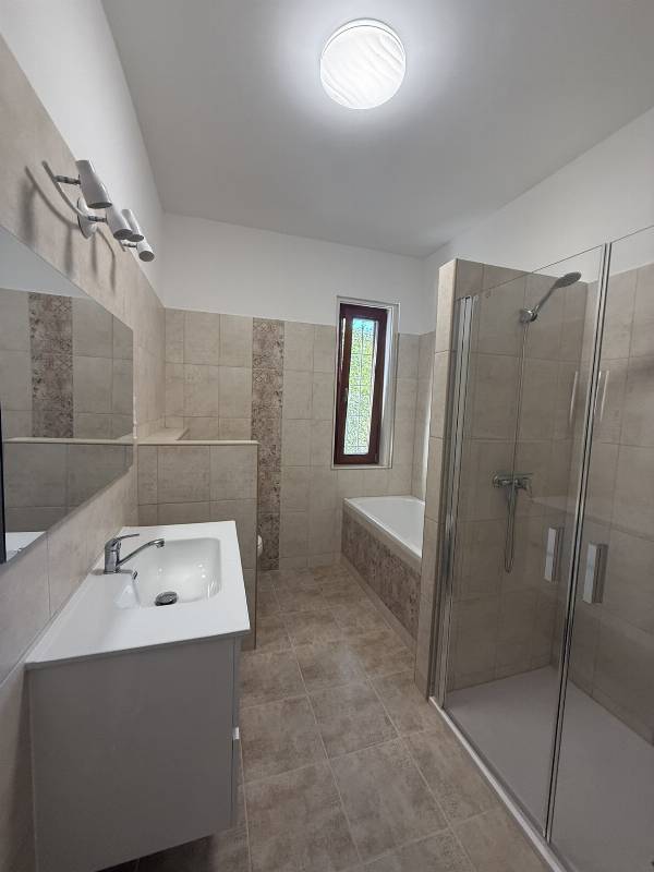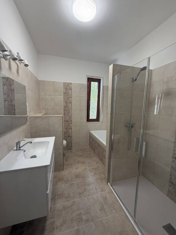 Kiadó családi ház üzlethelyiséggel Dorogon, frekventált helyen! Dorog központi részén, a Bécsi úton, a Pennyvel szemben kiadó egy két bejáratos, teljesen felújított családi ház, amely lakásként és üzlethelyiségként is használható. Ingatlan főbb jellemzői: Az első, utcafronti részben 2 nagyméretű helyiség (23 m² és 29 m²), valamint egy kis mosdó és zuhanyzó található → kiváló üzlethelyiségnek, irodának, szolgáltatónak. Akadálymentesített. A másik bejáraton keresztül érhető el a lakrész: előszoba, 2 szoba, konyha, fürdő és külön WC. A házhoz tartozik garázs és kert, ahol akár parkoló is kialakítható. Teljes felújítás történt: új víz- és villanyvezetékek, burkolatok, frissen festett falak. Klíma, gázkazán és radiátoros fűtés biztosítja a komfortot. Konyhabútor igény esetén a tulajdonos által beszerelhető. Melegvíz új villanybojlerrel megoldott. Bérleti díj: Üzlethelyiség: 250.000 Ft/hó Lakrész: 250.000 Ft/hó Egyben: 500.000 Ft/hó – előnyben a teljes ingatlan bérlése. Ideális választás szolgáltatóknak, irodának, kereskedelmi tevékenységhez vagy akár lakhatással egybekötött vállalkozáshoz.