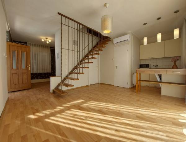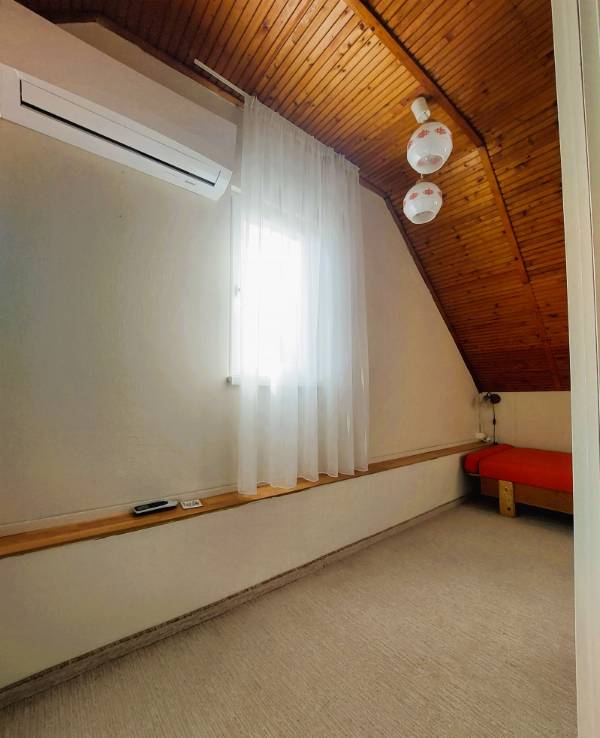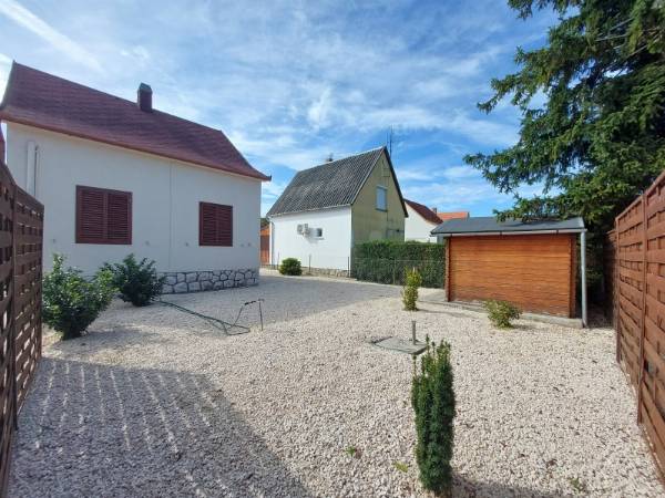 Ha egy nyugodt, csendes környezetben keresed leendő otthonod vagy nyaralódat, akkor ez az ingatlan tökéletes választás lehet! A harkányi üdülőövezetben, nyugodt zöld környezetben található, 56 m²-es, téliesített, tetőteres tégla ház egy 296 m²-es, gondozott telken helyezkedik el. A ház felújított, azonnal költözhető, és ideális lehet családoknak, nyaralónak vagy akár befektetési célra is. A földszinten egy tágas, amerikai konyhás nappali, két külön nyíló szoba, egy fürdőszoba WC-vel, és egy 12 m²-es terasz található. A tetőtérben két külön nyíló szoba, az egyikhez egy 5 m²-es, erkély is tartozik, valamint egy külön helyiség, amelyben egy WC, kézmosó és mosógép kiállás is kialakításra került. Itt található továbbá a villanybojler, amely a melegvizet biztosítja. A ház fűtéséről egy beépített kis kandalló gondoskodik, központi fűtés rendszerrel. Két darab Gree típusú hűtő-fűtő klíma is a komfortot szolgálja. Az egész házban új műanyag nyílászárók találhatók, kivéve az alsó szinten lévő két szobában, ahol rendkívül jó állapotú fa ablakok maradtak. Az új biztonsági bejárati ajtó mellett a nyílászárókat esztétikus, funkcionális fa zsalugáterek díszítik. Az alsó szintet jó minőségű laminált padlóval illetve járólappal a tetőteret pedig szőnyegpadlóval burkolták. A konyha egyedi tervezésű, gépesített, beépített sarokkal, villanytűzhellyel és Bosch mosogatógéppel. Fontos tudni, hogy a környéken még nincs kiépítve a csatornahálózat, ezért a ház zárt emésztő rendszerrel rendelkezik, gáz pedig az udvarban elérhető. A rendezett udvaron autóbeálló, egy 8 m²-es kis fa ház, és egy kellemes pihenőtér található. A kert gondozott, ideális helyszínt biztosít a pihenésre vagy a szabadidős tevékenységekre. Ház előtt közterületen díjmentes parkolási lehetőség, akár három személy autó számára is. Az ingatlan kiváló helyen található, közel minden fontos közszolgáltatáshoz: buszmegálló, óvoda, bölcsőde, orvosi rendelő, bankok, boltok (SPAR), pékség, piac, éttermek, kávézók mind elérhetők egy kellemes séta távolságra. Továbbá, a híres Harkányi Gyógyfürdő is csupán pár perc sétára található. A közlekedés is kényelmes, Pécs mindössze 25-30 perc autóútra, Siklós és Drávaszabolcs pedig 10 percnyi távolságra helyezkedik el. Ez a ház tökéletes választás lehet családi otthonnak, nyaralónak vagy akár befektetési céllal is. Ha felkeltette érdeklődését ez a nyugodt környezetben található ingatlan, ne habozzon! Hívjon bizalommal, és tekintse meg személyesen!
