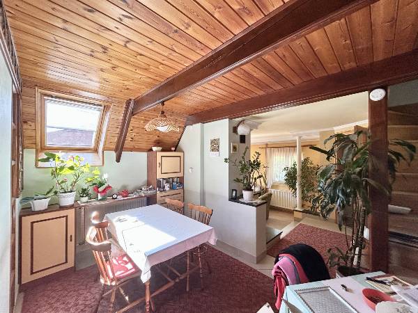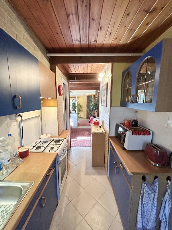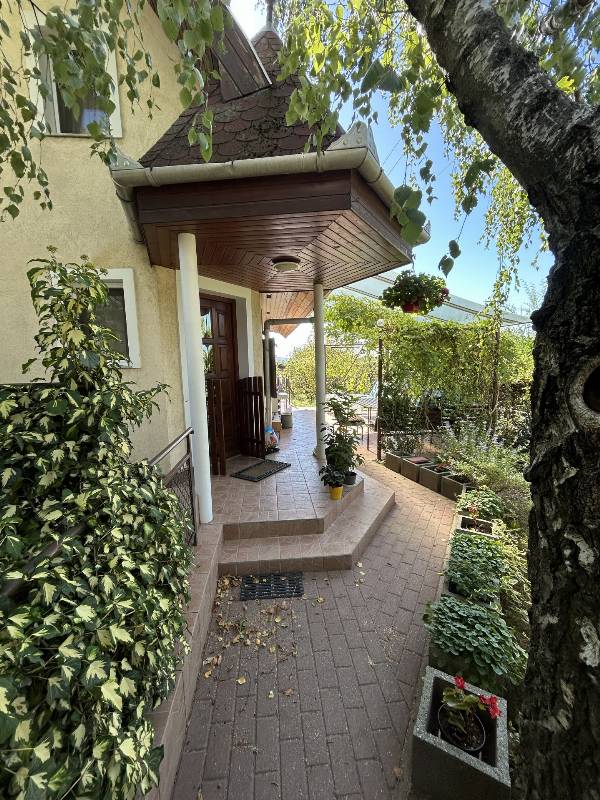 Fót egyik legnyugodtabb, zöldövezeti részén – a fóti tó közelében, a tájvédelmi körzet közvetlen szomszédságában – kínálunk eladásra egy 88 m²-es, jó állapotú, panorámás családi házat, amely egy ritka adottságokkal rendelkező, 689 m²-es, három utcára nyíló telken helyezkedik el. A vegyes falazatú ingatlan kívülről 10 cm-es hőszigeteléssel van ellátva, így kedvező fenntartási költségekkel üzemeltethető. A ház teljesen alápincezett, így bőséges tárolási és hobbi célú lehetőségeket kínál. A belső elrendezés praktikus, tágas és világos. A lakótér ékköve a napfényes télikert, amely nemcsak növények átteleltetésére alkalmas, hanem kiváló közösségi térként is szolgálhat. A hangulatos nappalit egy kandalló teszi igazán otthonossá és meghitté, így a ház minden évszakban kellemes életteret nyújt – legyen szó pihenésről, családi időtöltésről vagy vendégfogadásról. A házhoz tartozik: Hatalmas, fedett terasz – tökéletes helyszíne a családi és baráti összejöveteleknek Különálló pince (a ház teljes egészében alápincézett) Kétállásos garázs, amely két utcáról is megközelíthető Szerszámtároló, akár kisebb műhely kialakítására is alkalmas Külön locsoló vízóra, amely segít a kert fenntartási költségeinek optimalizálásában A környék csendes, biztonságos és természetközeli, mégis kiváló az infrastruktúra. Budapest közelsége megmarad, hiszen a Nyugati pályaudvar tömegközlekedéssel 35 perc alatt elérhető. Ideális választás azok számára, akik nyugodt, természetközeli környezetben szeretnének élni, de nem akarnak lemondani a főváros közelségéről sem.