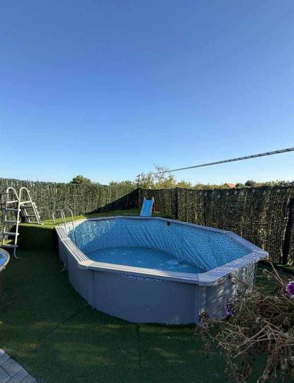 Kakucson eladásra kínálok egy 96 nm-es, 3 szobás, újszerű állapotú ikerházat, amely kényelmes elrendezésével és modern megoldásaival ideális választás lehet a családok számára. Az ingatlanban 3 különálló szoba, világos nappali-étkező, modern konyha és igényesen kialakított fürdőszoba található. A praktikus elrendezésnek köszönhetően minden családtag számára biztosított a privát tér, miközben a közös életterek tágasak és barátságosak. Háztartási helység, tároló és külön toalett is a komfortot szolgálja. Az épület 2021-ben korszerű építési technológiával készült, alacsony fenntartási költségekkel, energiatakarékos megoldásokkal. A kert kellemes méretű, kiválóan alkalmas pihenésre és kikapcsolódásra. Az egész udvar viacolorral borított, a kert végében található egy klassz medence, valamint a nappaliból egy hatalmas fedett teraszra lehet kilépni. Főbb jellemzők: • 96 m² alapterület • 3 szoba + nappali • modern kialakítás • energiatakarékos, új építés • saját kert • külön helyrajzi szám • fedett terasz Ez az ingatlan tökéletes választás mindazoknak, akik egy új, azonnal költözhető otthont keresnek nyugodt környezetben. Amennyiben érdekes lehet önnek ez a remek ikerház, kérem, keressen a megadott elérhetőségen.