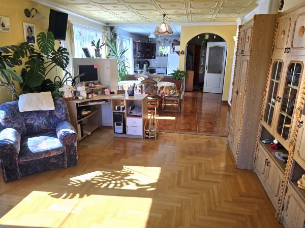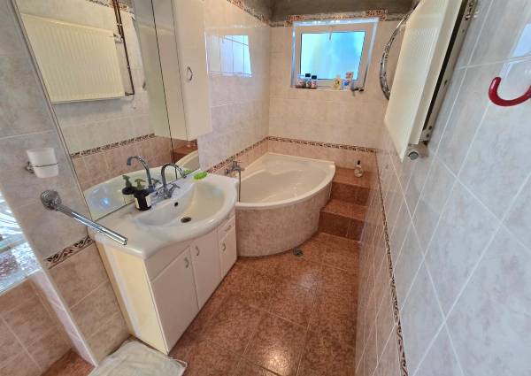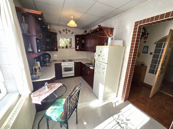 Bicske egyik nyugodt, mégis kiválóan megközelíthető kertvárosi utcájában ELADÓ ez a kétgenerációs családi ház. A telek 685 nm-es, sík, teljesen körbekerített. Az ELADÓ családi ház 3 szintes, szintenként 100 nm, a szinteket belső lépcsőház köti össze. Az alagsorban található egy garázs, a kazánház, egy kamra, valamint egy tágas helyiség, amely igény szerint akár tárolóként, akár hobbi szobaként vagy műhelyként is hasznosítható. Igény szerint még egy garázs is kialakítható. A lakószint 2 bejárattal rendelkezik, átjárható, de teljesen külön választható. Az ingatlan szerkezete lehetővé teszi, hogy két teljesen különálló otthonként funkcionáljon, ugyanakkor egyetlen nagy családi rezidenciaként is kényelmesen szolgálja lakóit. A földszint egyetlen összefüggő élettérré formálja a nappalit, az étkezőt és a konyhát, amely ideális központja a családi mindennapoknak és a vendégfogadásnak egyaránt. A nappaliból és a hálószobából kilépve egy tágas teraszról szemlélhetjük a kertet, amelyet fenyők, gyümölcsfák tesznek hangulatossá. A kertben tárolásra alkalmas melléképület is található. A tetőtér praktikusan kialakított, alapterülete 100 nm, de a hasznos alapterülete a manzárdtetős kialakítás miatt ennél kevesebb. Egy tágas nappali mellett, egy konyha, és 3 külön fürdőszobával rendelkező hálószoba van kialakítva. A 2 utcafronti szobához erkély is kapcsolódik. A külön nyíló szobák kényelmet és visszavonulást biztosítanak minden generáció számára. Az ELADÓ családi ház 2010 óta folyamatos gondoskodás mellett áll, állapota részben felújított, ugyanakkor teret enged új tulajdonosa számára, hogy saját stílusára formálja. A nyílászárókat a tetőtéri konyha kivételével hőszigetelt műanyagra cserélték. A fűtésrendszer korszerűsítve lett, réz csövekkel, gázkazánnal, Dunaferr típusú radiátorokkal. Ipari áram is megtalálható, illetve 2 villanyóra és 2 villanybojler van felszerelve. A tető szigetelt, cserepes lemezzel fedett. A környék csendes, zöldövezeti, mégis közel található iskola, üzletek, busz- és vasútállomás, a mindennapok kényelme tehát garantált. Ez az ELADÓ családi ház nem pusztán egy ingatlan, hanem lehetőség arra, hogy otthonra találjon egy többgenerációs család, vagy egy befektető két különálló lakásként hasznosítsa. Egy olyan tér, amely egyszerre kínál nyugalmat, biztonságot és értéket Bicske egyik kedvelt környezetében. Adatbázisunkban számos eladó-kiadó ingatlan közül választhat. Személyre szabott ügyintézéssel, ügyvédi háttérrel állunk ügyfeleink rendelkezésére. 15 éves értékesítői és vezetői tapasztalat. Minden egy helyen, az ingatlan bemutatásától a kulcsátadásig! Hitelminősítés a Fő téri irodánkban a hét minden napján. Legyen közös a sikerünk!