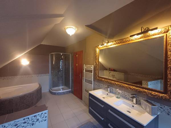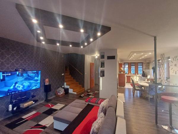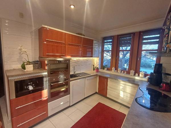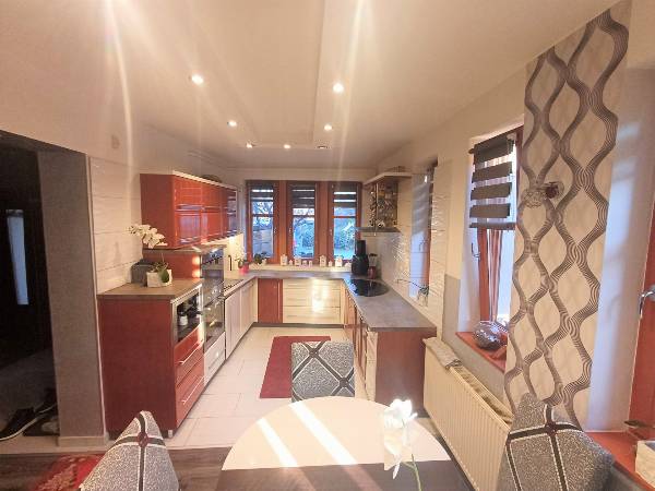 A város északi, az osztrák határhoz közeli városrészén - Herény- Kámoni álomotthon eladó! Szombathely egyik legkedveltebb városrészén, Herényben a Hóvirág utcában eladó egy 149 négyzetméteres, otthonos, kétszintes családi ház. A csendes környéken álló, Fő tértől 3 km-re, Ausztriától 12 km-re található. A területen hat ház áll, de mindenkinek saját, privát szféra áll rendelkezésére. A privát telek nagysága 400 négyzetméter. Egy 21 négyzetméteres – plusz tárolásra is alkalmas - garázs is a terület része. A ház alsó szintje 100 négyzetméteres, amihez egy 12 négyzetméteres fedett terasz is tartozik. Ez utóbbi a kert mellett élhető teret biztosít az ott lakóknak és kényelmet nyújt a szabadban töltött idő alatt. A konyhához étkező tartozik, ami a tágas, 65 négyzetméteres nappalihoz kapcsolódik. A nappaliból három ajtón is ki lehet lépni a szabadba. A nappali-étkező-konyha közepén található az egyedi tervezésű kandalló díszítőelemű fahasábokkal, aminek a szomszédságában bárszékekkel bárpult is található. A villanyszerelési ledek és az álmennyezetes megoldások feldobják a helyiség hangulatát. Az alsó szinten még vécé, mosókonyha, háztartási helyiség található. Emellett a földszint része egy 13 négyzetméteres szoba is, valamint nagy rakodótérrel rendelkező gardróbszekrény. Az emelet bruttó 74 négyzetméter alapterületű, de a tetőtér miatt az igazán hasznos terület 50 négyzetméter. A fenti egyik, gardróbszekrénnyel ellátott szobából franciaerkély nyílik. Emellett felül szintén van még egy plusz hálószoba. A 16 négyzetméteres fürdőhöz is franciaerkély tartozik, míg az előtér 13 négyzetméteres. Egyéb információk: A ház fűtése gázcirkó kondenzációs kazán (Sanier Duvall). Az alsó és a felső szint külön fűthető, szabályozható radiátoros hőleadással. A ház gázfűtése 20 ezer forintból megvan havonta. A szakemberek által tervezett és épített modern, U alakú konyhabútor magas fényű fronttal, minőségi beépített gépekkel van jól felszerelve. (beépített mikró, kávéfőzőgép, mosogatógép, sütő-főzőlap, vízlágyító, hűtő, páraelszívó) A 8 elemből álló, gépesített konyhában főzésre, előkészítésre számos hely áll rendelkezésre. Eredeti fa, hőszigetelt nyílászárók az egész házban. A ház vízvezetékeit vízlágyítóval látták el. Minden egyes ledes izzó energiatakarékos. Fa tüzelésű kandalló is nyújthatja a meleget. A jól tervezett házban beépített gardróbszekrények lettek kialakítva, ahol a maximális helykihasználás mellett mindenki helyet talál ruháinak és használati tárgyainak.A jelenlegi tulajdonosok - kérés esetén - a bútorokat, az összes beépített szekrényt az ingatlanban hagyják Fűtő-hűtő klímák biztosítják a légkondicionálást. Kerámia burkolat a konyhában, a fürdőben és az előtérben. Parketta a nappaliban, a szobákban. A biztonságot ujjlenyomatos beléptető biztosítja, de van kiépített kamerarendszer és riasztó is. A ház előtt három autó megállására alkalmas beálló található. Egy 21 négyzetméteres – plusz tárolásra is alkalmas - garázs is a ház része. Az ingatlan körbekerített, területe füvesített, fásított. A kiváló lakóközösség számára, közös terület is rendelkezésre áll, ahol adott a szórakozási, sportolási, pihenési és grillezési lehetőség. Az ingatlan álomotthon lehet a gyermekes családok számára annak környéke miatt is. Itt minden adott ahhoz, hogy kényelmesen, praktikusan és komfortosan élhesse mindennapjait az új tulajdonos emellett biztonságban tudhassa családját és értékeit. Ha ebben a kivételes házban el tudja képzelni az életét, akkor kérem keressen és egy előre egyeztetett időpontban szívesen megmutatom az ingatlant. Kérem, hogy csak komoly érdeklődők hívjanak! Irodám teljeskörű adásvételi szerződést bonyolít és kedvező hitelajánlatot kínál.