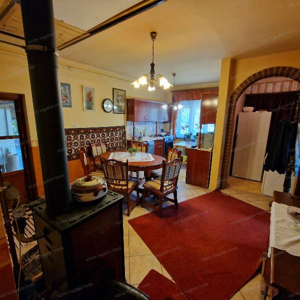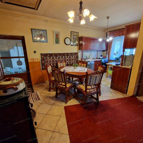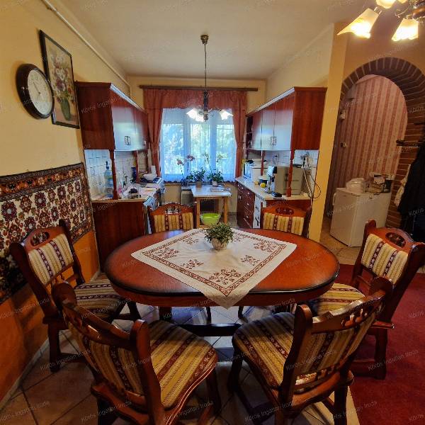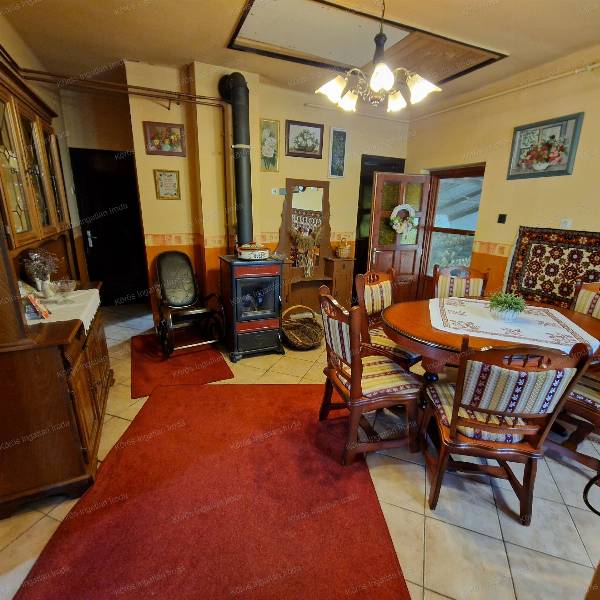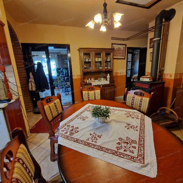 Békésszentandráson üdülősorhoz vezető úton, tetőtérbeépítéses családi ház eladó! Aszfaltozott út mellett, közel a központhoz, mégis kertvárosias környezetben helyezkedik el. Az ingatlan 1980-as év végén épült, kiemelt alapzatra B-30-as tégla falazattal. Alsó szintje hasznos alapterülete ~70m2, normál méretű. A főbejárathoz 9m2-es fedett teraszon keresztül lépünk be. Az előszobából balra 2 külön bejáratú utcára néző, parkettás szoba található, melynek ablakai nyugatra néznek. A folyosó végén mosdó, helyiség, és tusolós fürdőszoba került kialakításra. A konyha-étkező-folyosó egy légtérben, modern stílusban funkcionál, ezért tágas, világos, otthonos érzetet nyújt. A házközponti fűtést fatüzeléses vízteres kandalló biztosítja radiátoros hőleadókkal, mely az alsó szint közepén az étkezőben található.. Másodlagos fűtés biztosítása gázkonvektorokkal megoldott. Felső szint kialakítása elkezdődött, két szélén a sufni leválasztás, és a mennyezet szigetelése, parketta fedéssel elkészült. A fenti szoba 29m2 hasznos alapterülettel rendelkezik,a hozzá tartozó emeleti erkély 2,3m2.. Az ingatlanban beveztett nappali áram 3x16A, a vezérelt áram 3x25A. A gazdasági részt és a főépületet ~20m2 -es fedett rész köti össze, jeenleg fatárolóként hasznosítják. A melléképület első helyisége garázs, második tároló, harmadik műhelyként funkcionál. Minden helyiség árammal ellátott, betonozott. Bontásra váró ,,tákolmány válassza el térben a kertet. Itt konyhakerti növények, gyümölcsfák sokasága ontja termését. Locsolásukról fúrt kút gondoskodik. Az előkertes családi házhoz tartozó telek nagysága 1183nm. Az ingatlan per, teher, igény mentes! Az ingatlanról, a hirdetésekben szereplő információk a megbízótól kapott adatok alapján készítettük, irodánk azokért felelősséget nem vállal! Békésszentandrás 3500 fővel rendelkező, magyar lakta település. Szarvastól 5km-re található. Többszáz közvetlen vízparttal rendelkező hétvégi ház virágoztatja fel az idegenforgalmat. A Hármas-Körös Kákafoki- holtága mentén elhelyezkedő gyönyörű község. A 44-es főút szeli ketté.